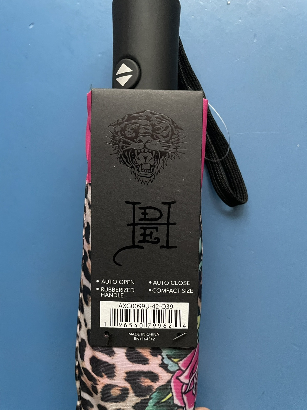 как выглядит Ed Hardy Leopard Skull Rose Prints Compact Umbrella with Case New фото