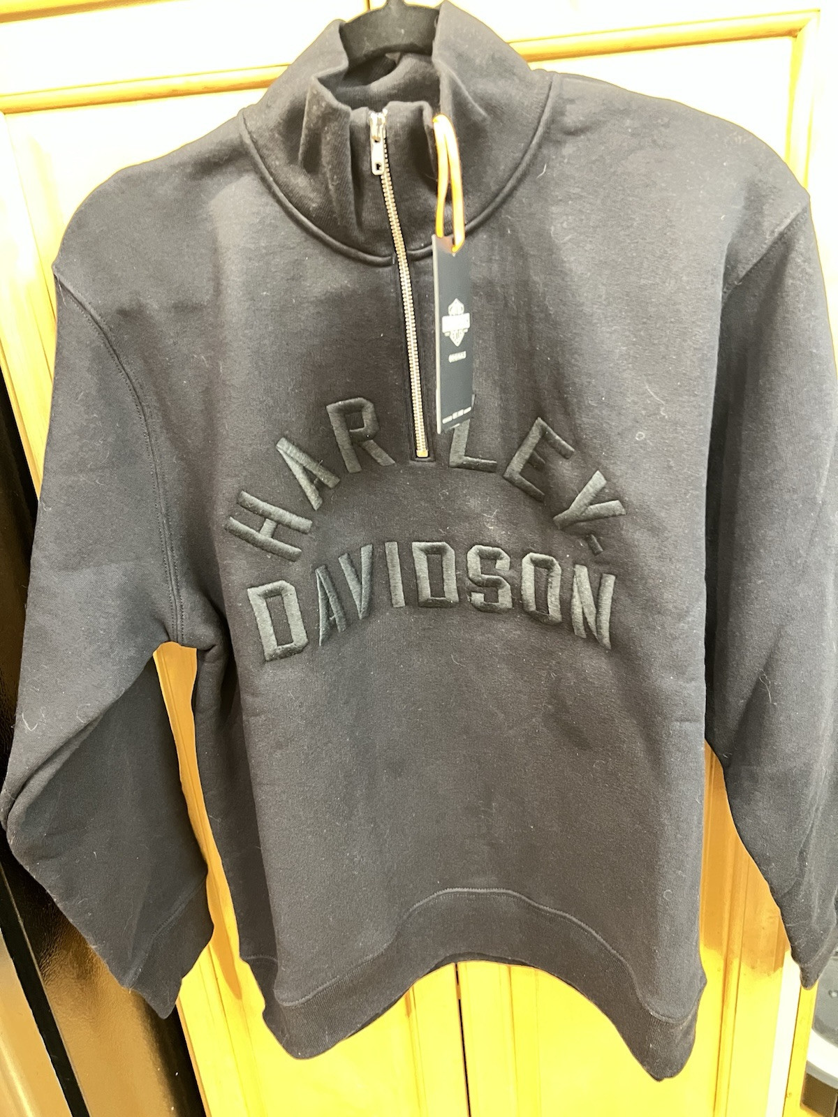 как выглядит Harley Davidson ICON 1/4 Zip NWT Pullover Mock Neck Sweatshirt Jet Black Sz S фото