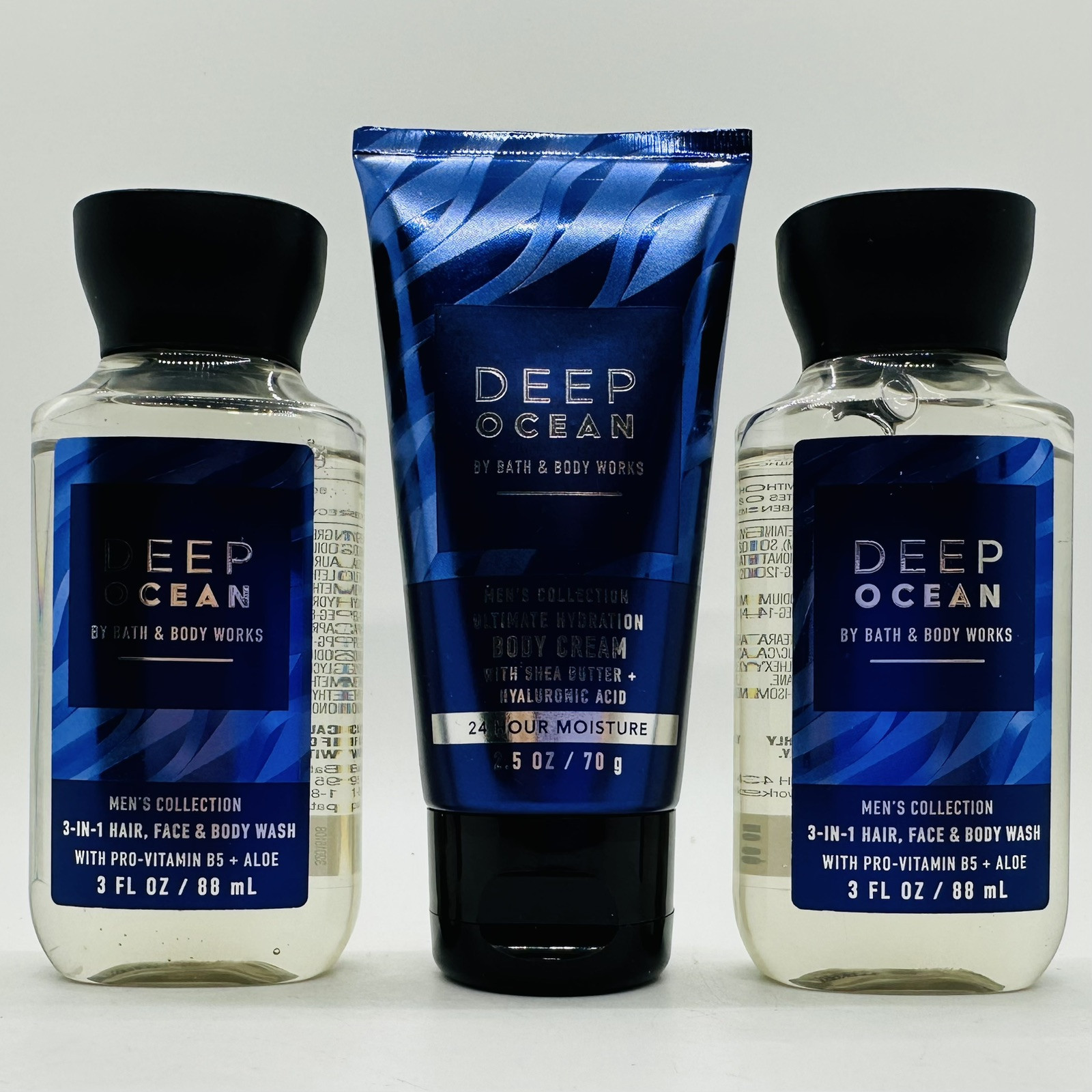 3/BATH BODY WORKS DEEP OCEAN MEN S COLLECTION 1/BODY CREAM 2/BODY WASH MINI