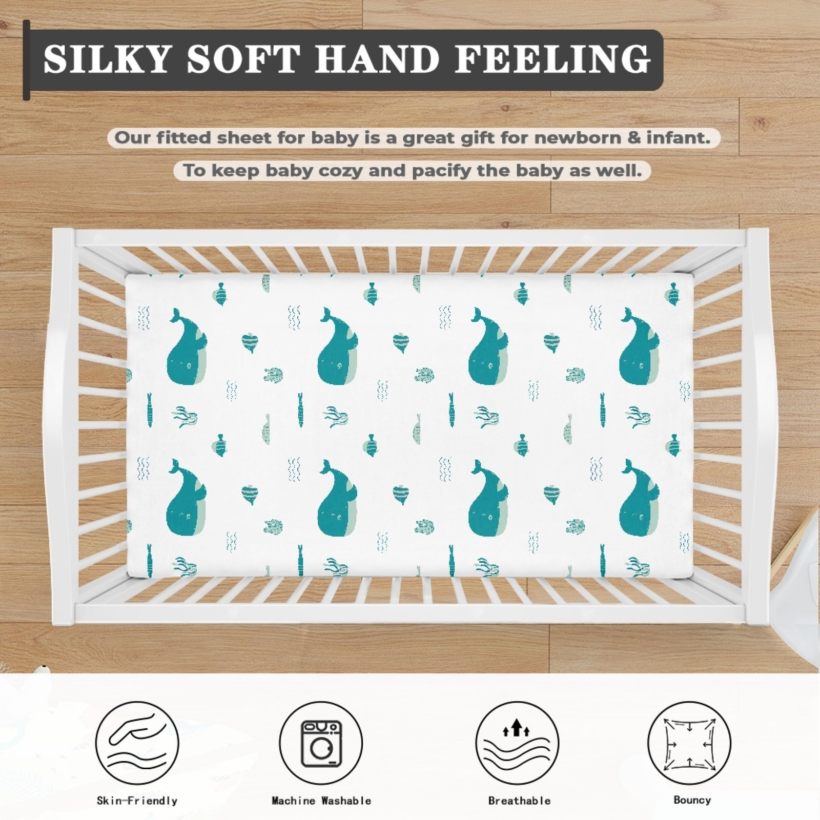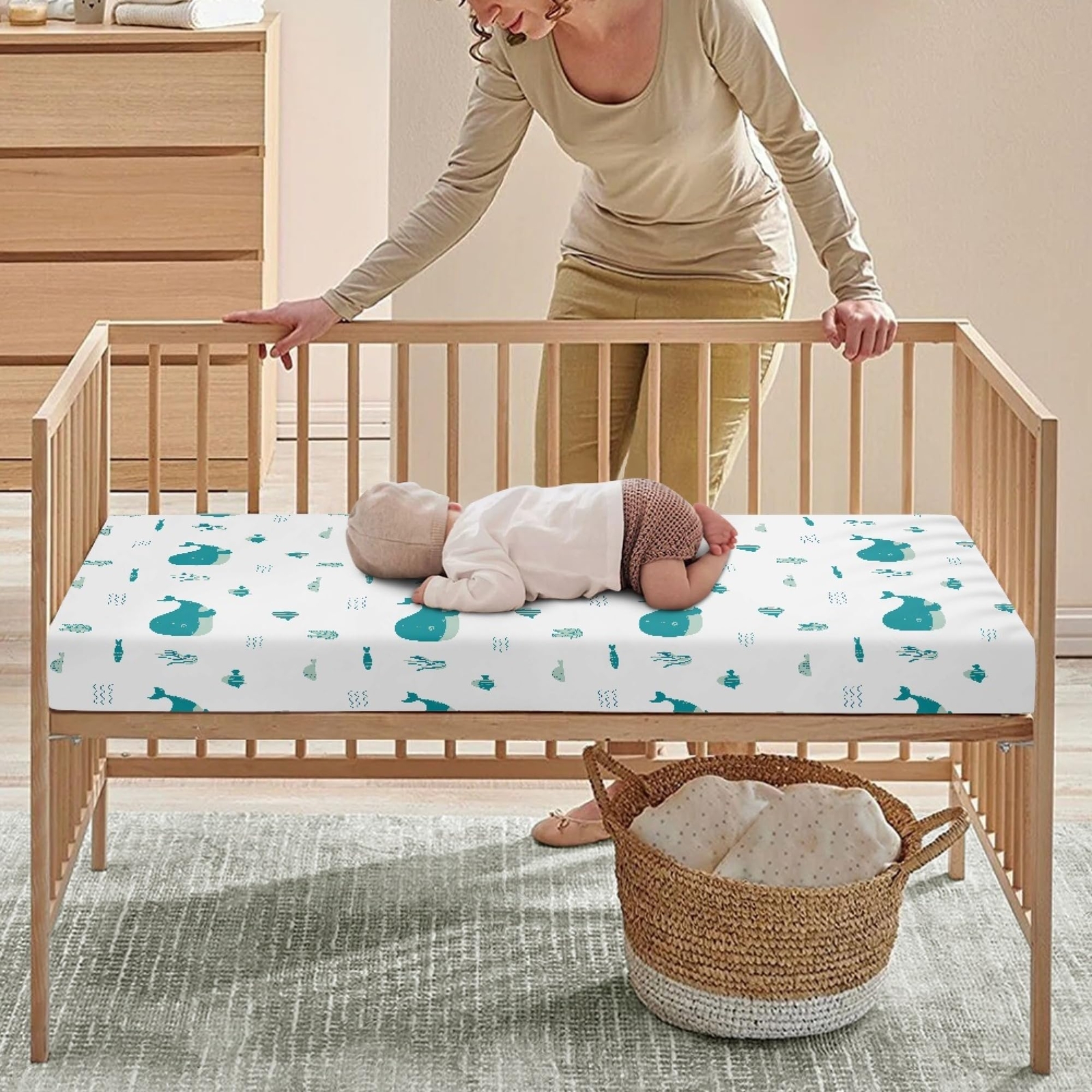 Blue Whale Crib Sheet 28x52 Fitted Baby Mattress Sheet Boys Girls Bedding