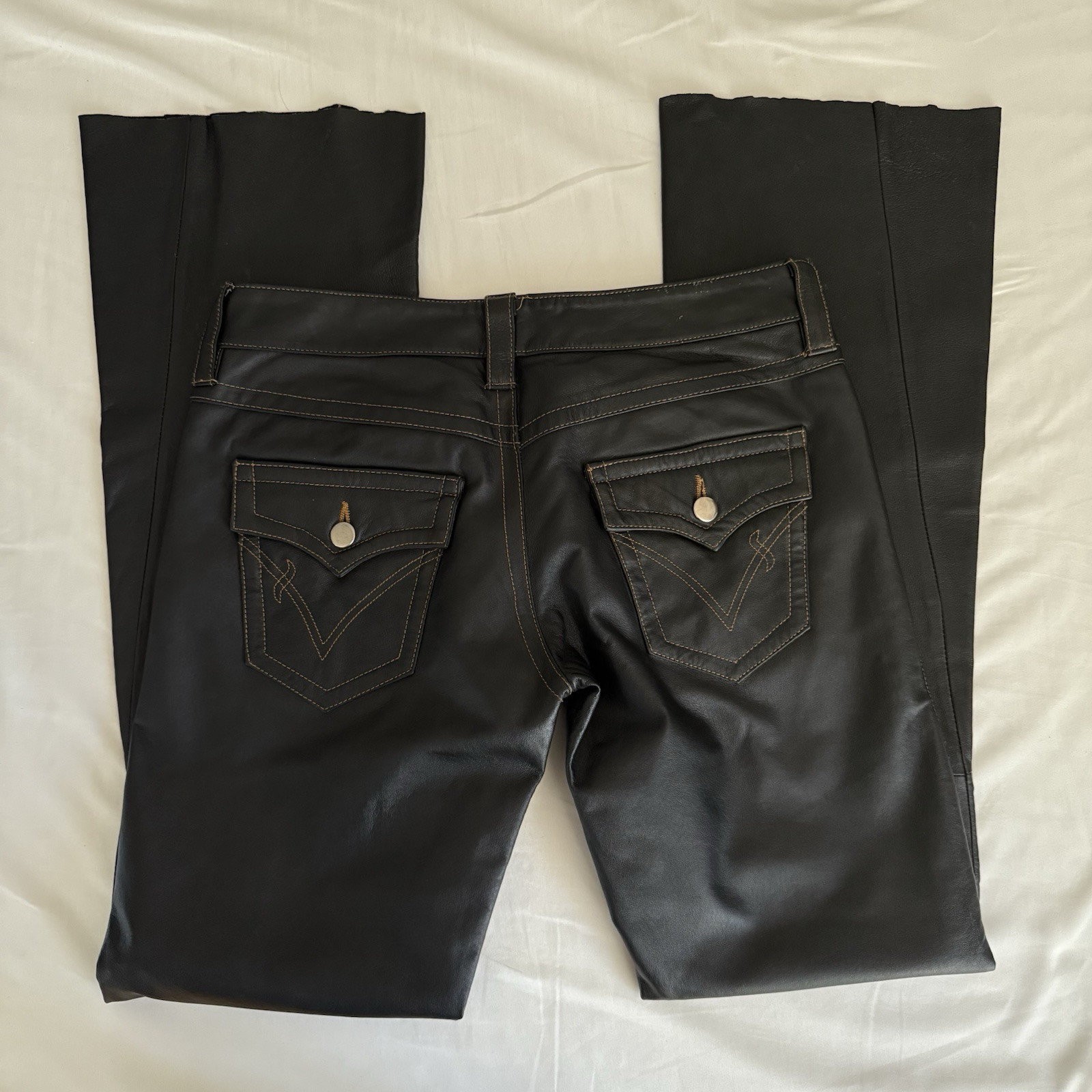 как выглядит VTG NYS Flared Leather Pants Sz M Women s фото