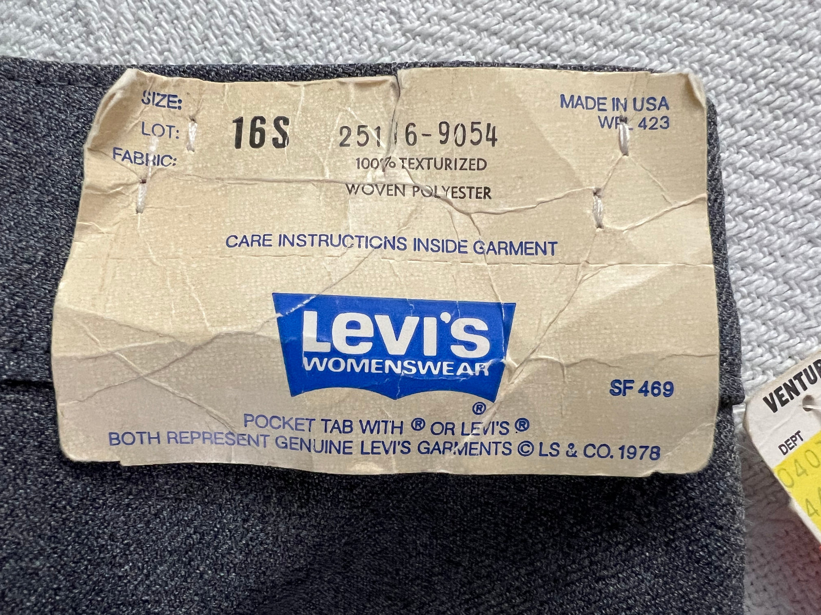 Vintage Levi's 70s NWT Gray Polyester Pants Flare Slacks 16 Short NEW NOS Levi