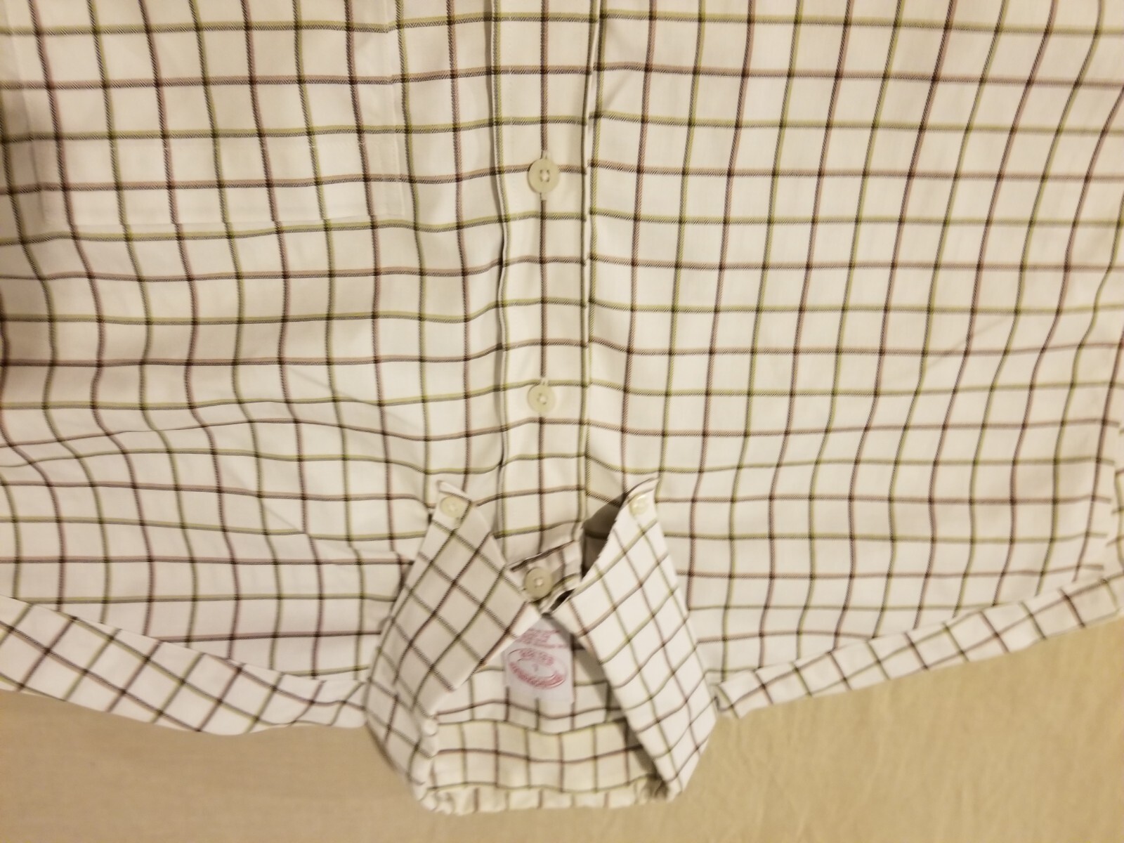 как выглядит Mens Brooks Brothers Dress Shirt L Large Green Beige Button Cotton фото