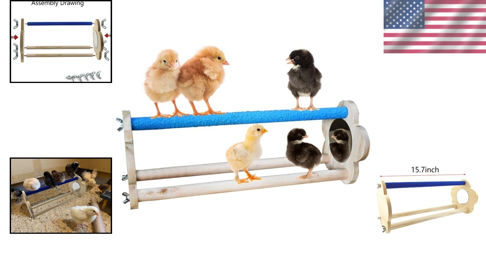как выглядит Wooden Chicken Perch with Rough Surface and Mirrors - Fun Roost for Chicks фото