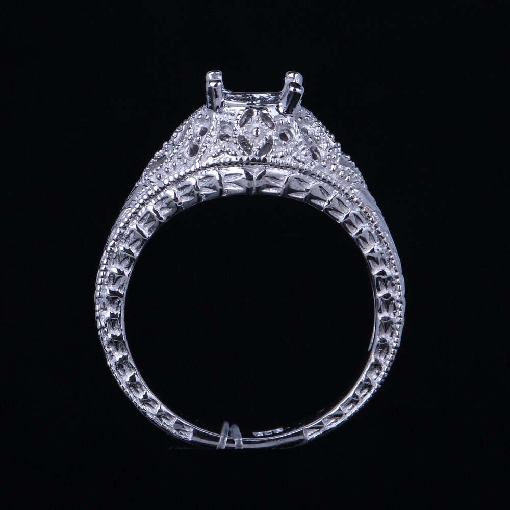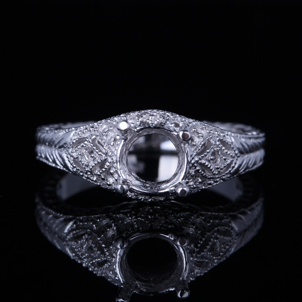 Sterling Silver 925 Round Cut Semi Mount Antique Filigree Wedding Fine Ring