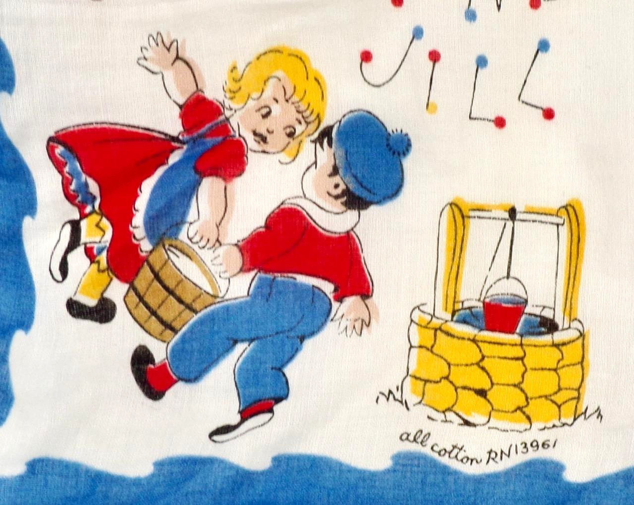 как выглядит Jack Jill Hankie Cotton Childs Nursery Rhyme 1950s 8.75in Square 21 фото