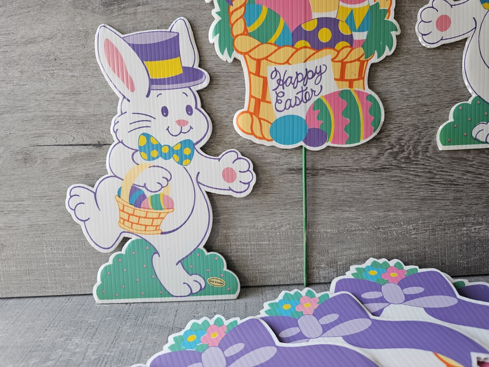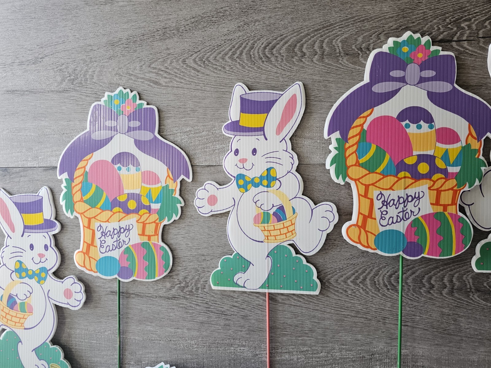 как выглядит 24 Vintage Easter Bunny Yard Stakes Markers Outdoor Bunnies Baskets 1990s фото