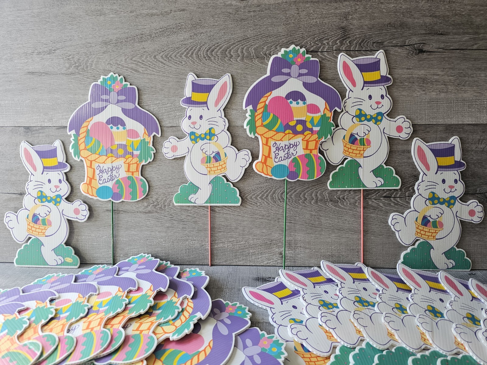 • 24 Vintage Easter Bunny Yard Stakes Markers Outdoor Bunnies Baskets 1990s