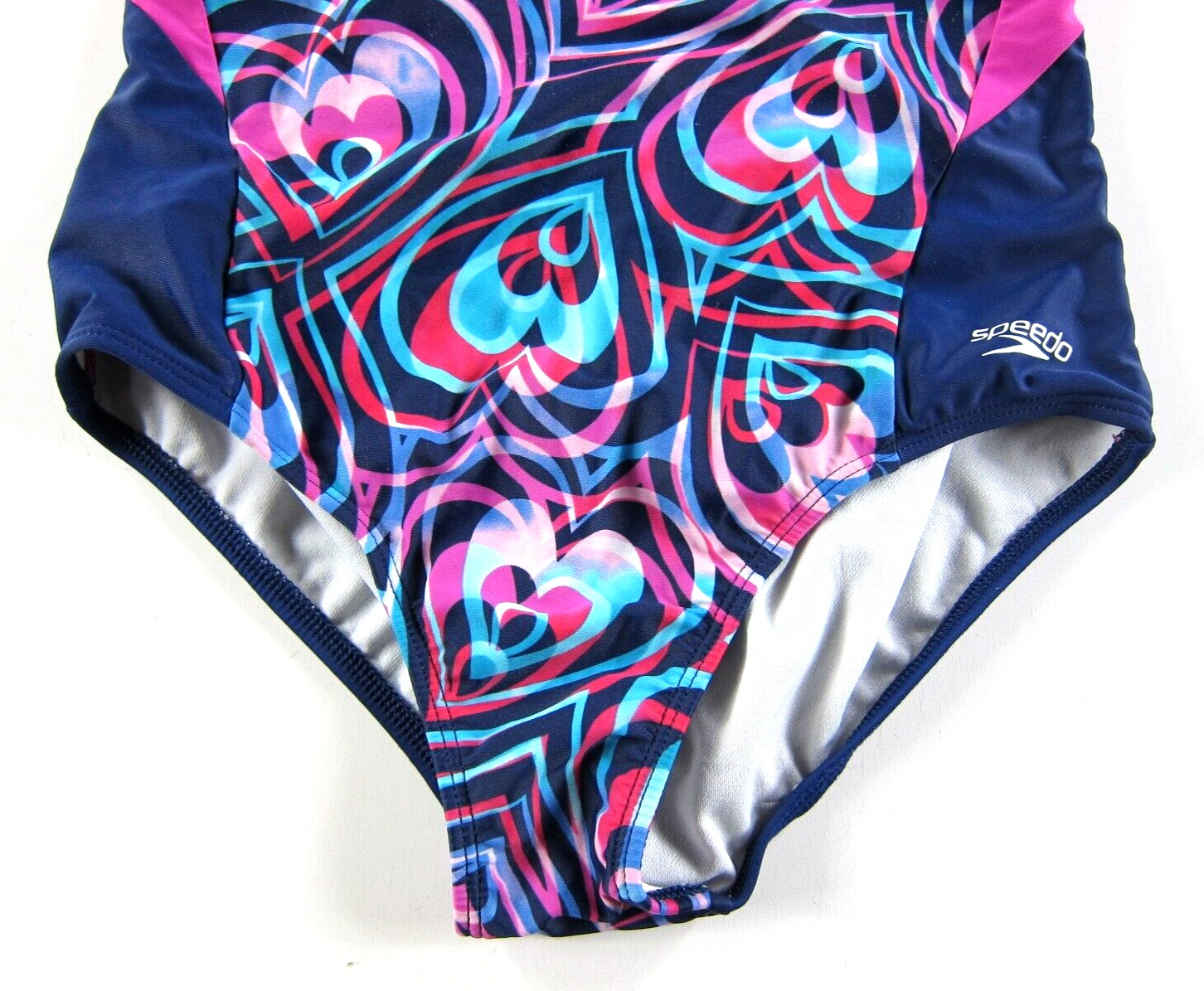Speedo Pink Blue Red Heart Cute Team Race Swim Suit Girl Size 14