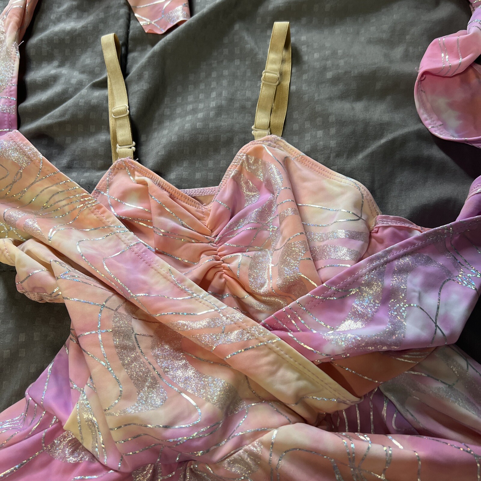 как выглядит revolution dancewear 0224 "Peach Multi" Yellow Silver dress Kids Girls size LC фото
