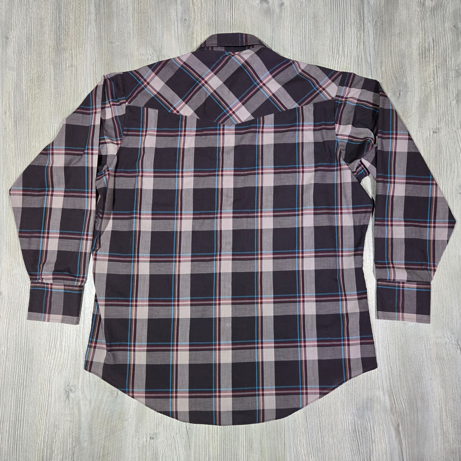 Men's Vtg Ely Cattleman Black Gray Blue Plaid Pearl Snap Western Shirt - XL