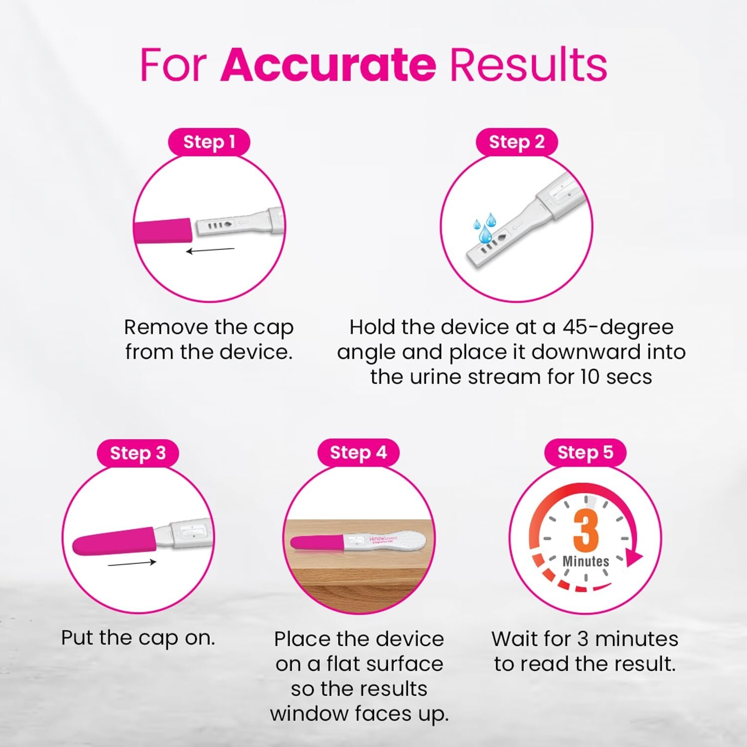 Особенности: Easy, comfortable and affordable test kit, Helps to check for pregnancy at home, Can be used at any time and as per your convenience, Provides accurate results in just 3 minutes, Provides 99% accurate results, Home-based rapid HCG detection, Easy to use and hassle-free, Easy to grip and comes with a cap for added hygiene