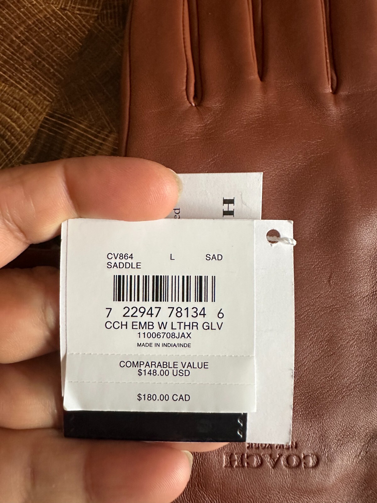 как выглядит COACH CV864 Womens Saddle Brown Leather Tech Gloves NEW SIZE LARGE NWT фото