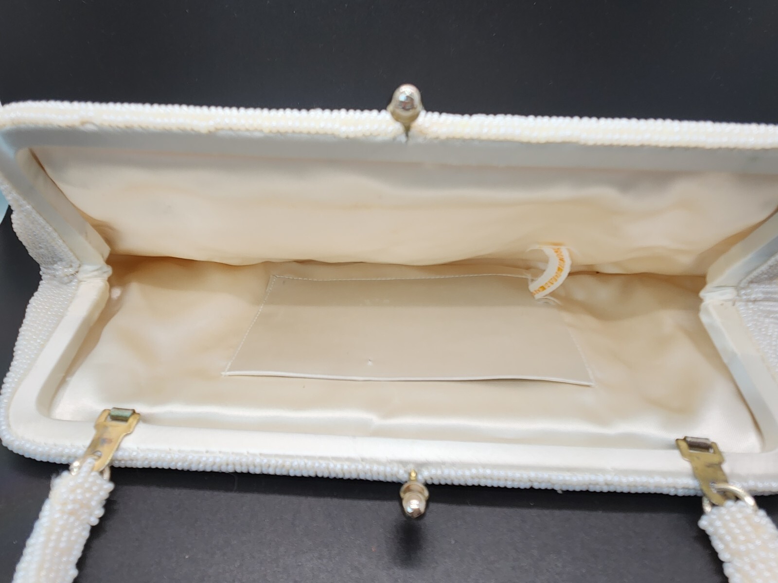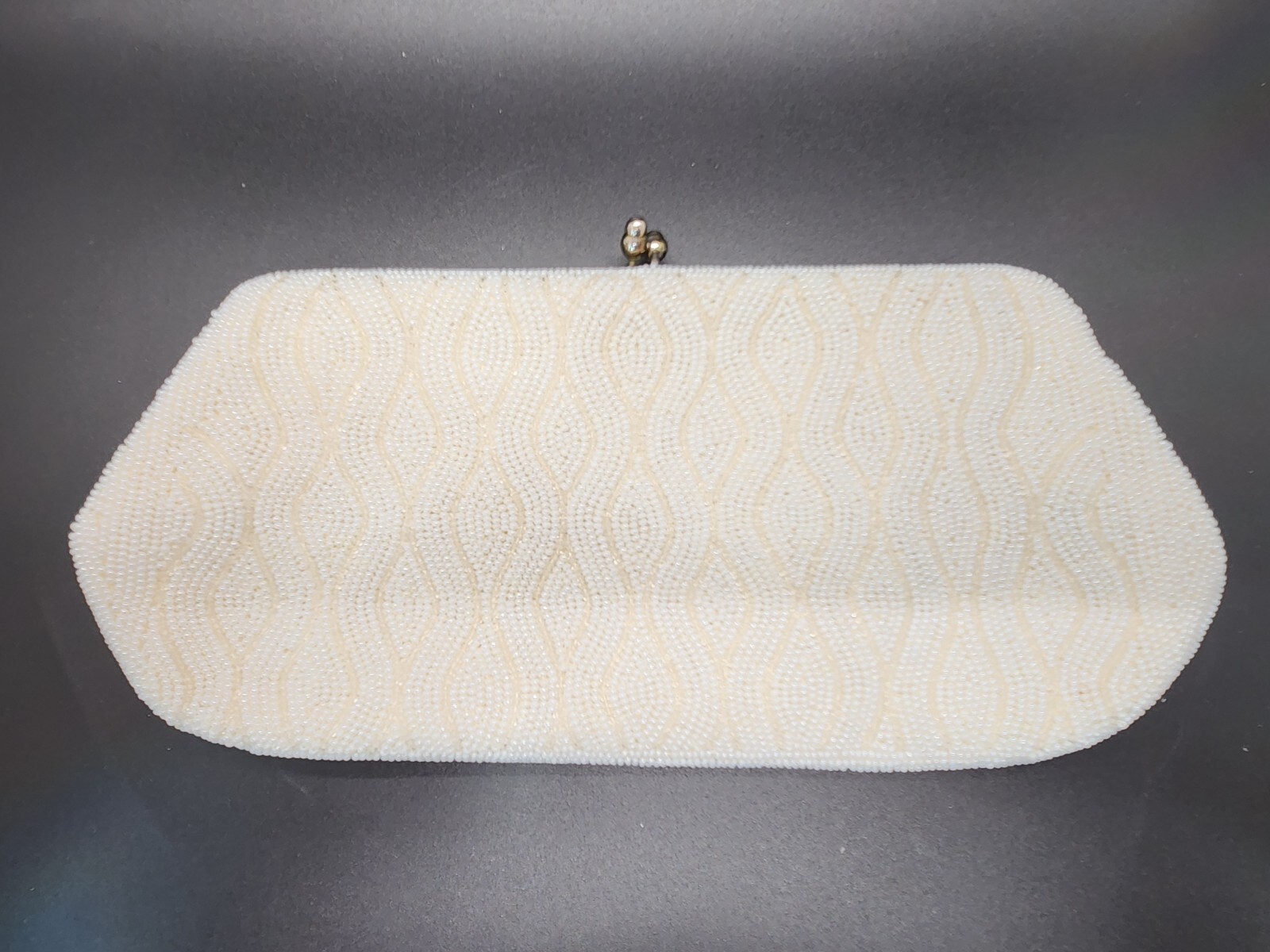 как выглядит Vintage Made in Japan White and Clear Seed Beaded Evening Bag Purse фото