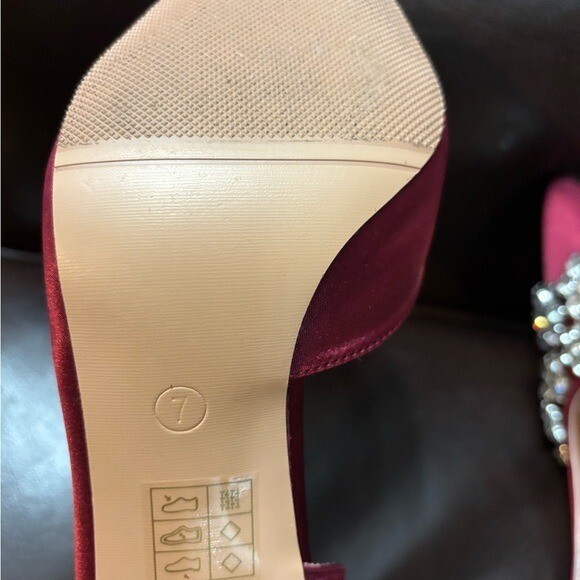 ERIJUNOR Size 7 Burgundy Satin Formal/ Prom 3 Heel Rhinestones Dress Shoes