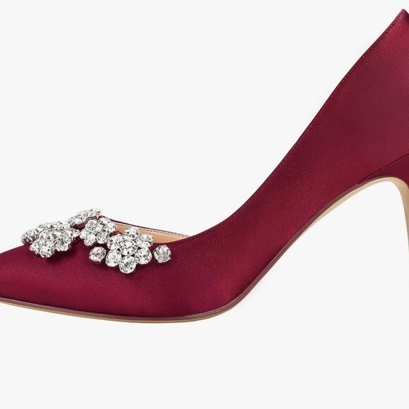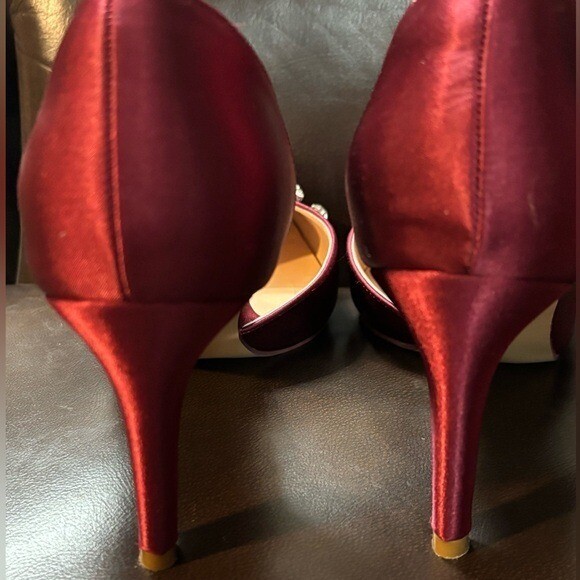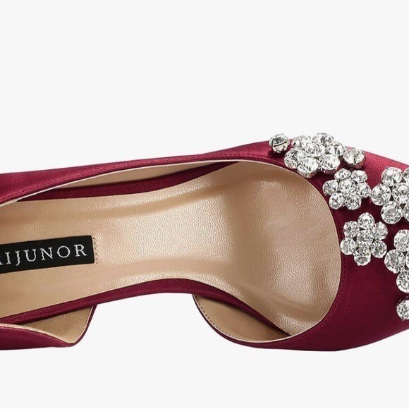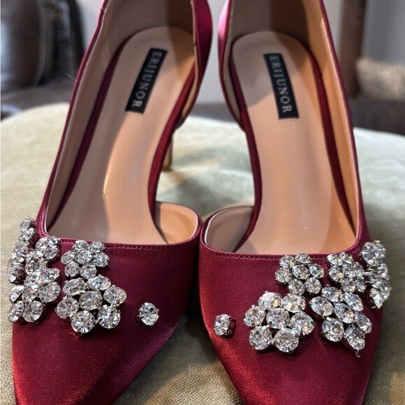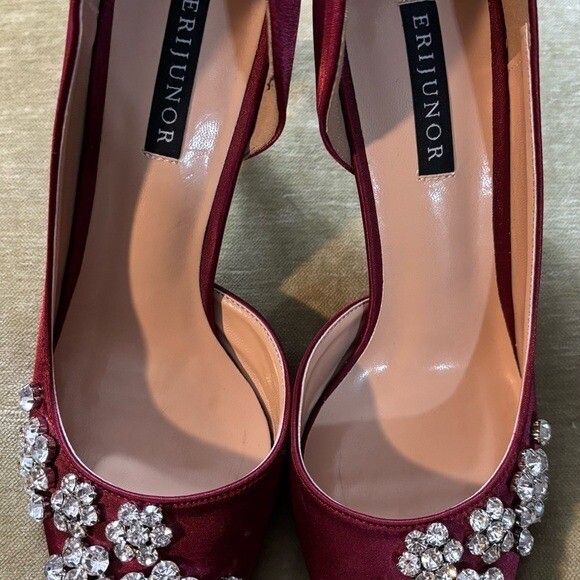 как выглядит ERIJUNOR Size 7 Burgundy Satin Formal/ Prom 3" Heel Rhinestones Dress Shoes фото