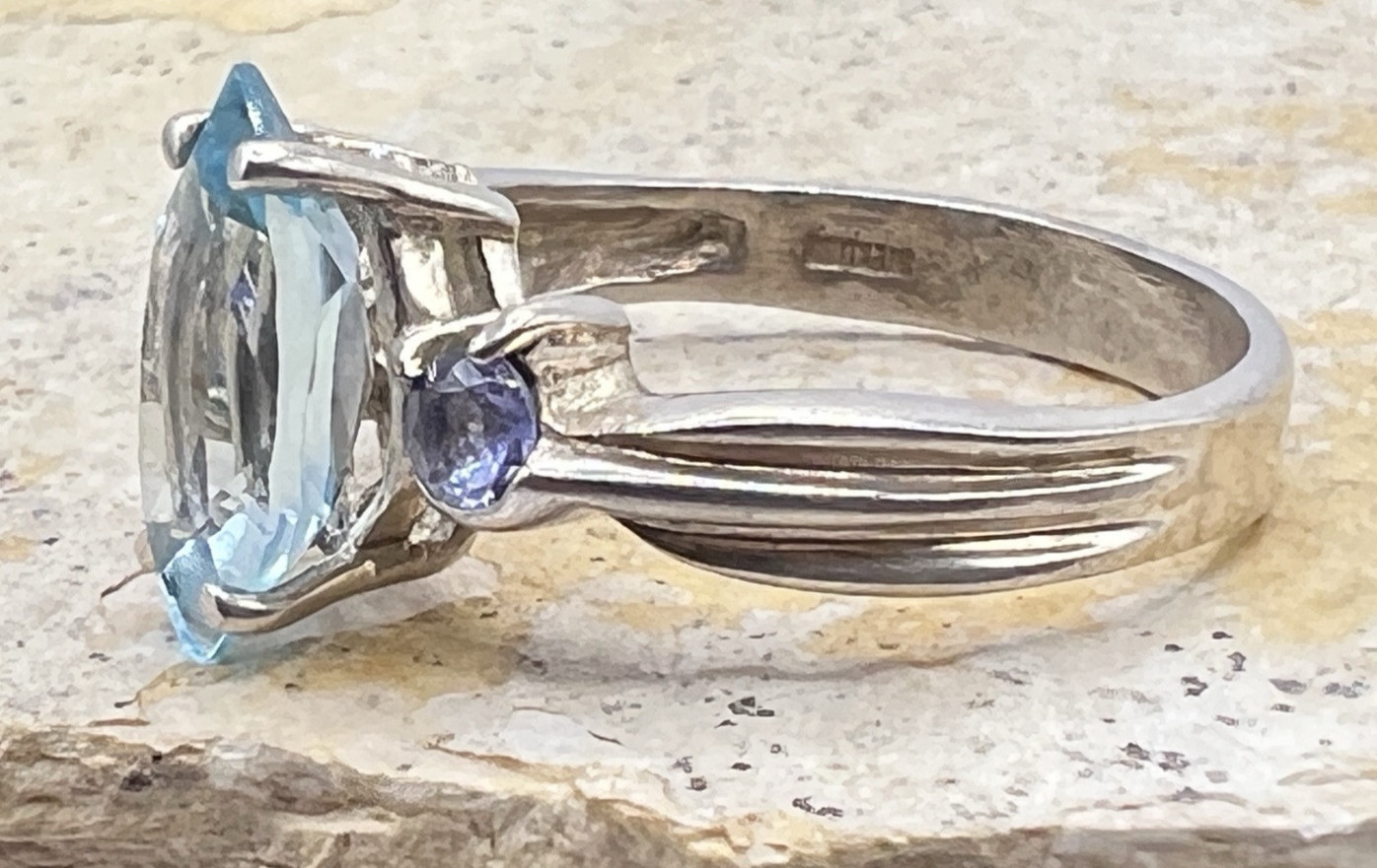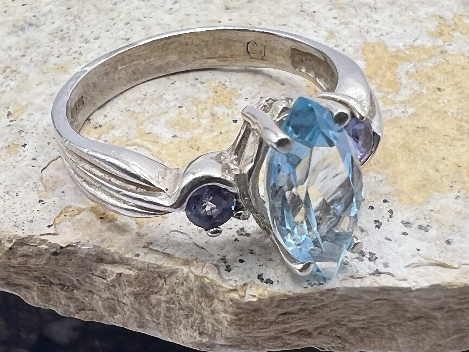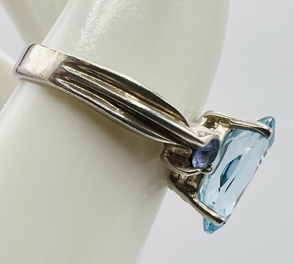 как выглядит Vintage Sterling Silver Ring - Blue Topaz Marquise Center Stone фото