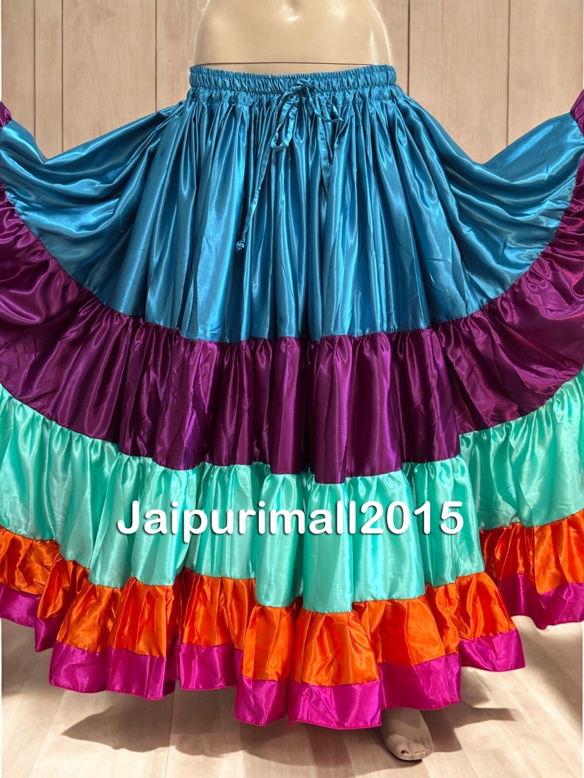 Satin 25 Yard Skirt 5 Tiered Tribal Belly Dance Skirt Gypsy Flamenco ATS FCBD