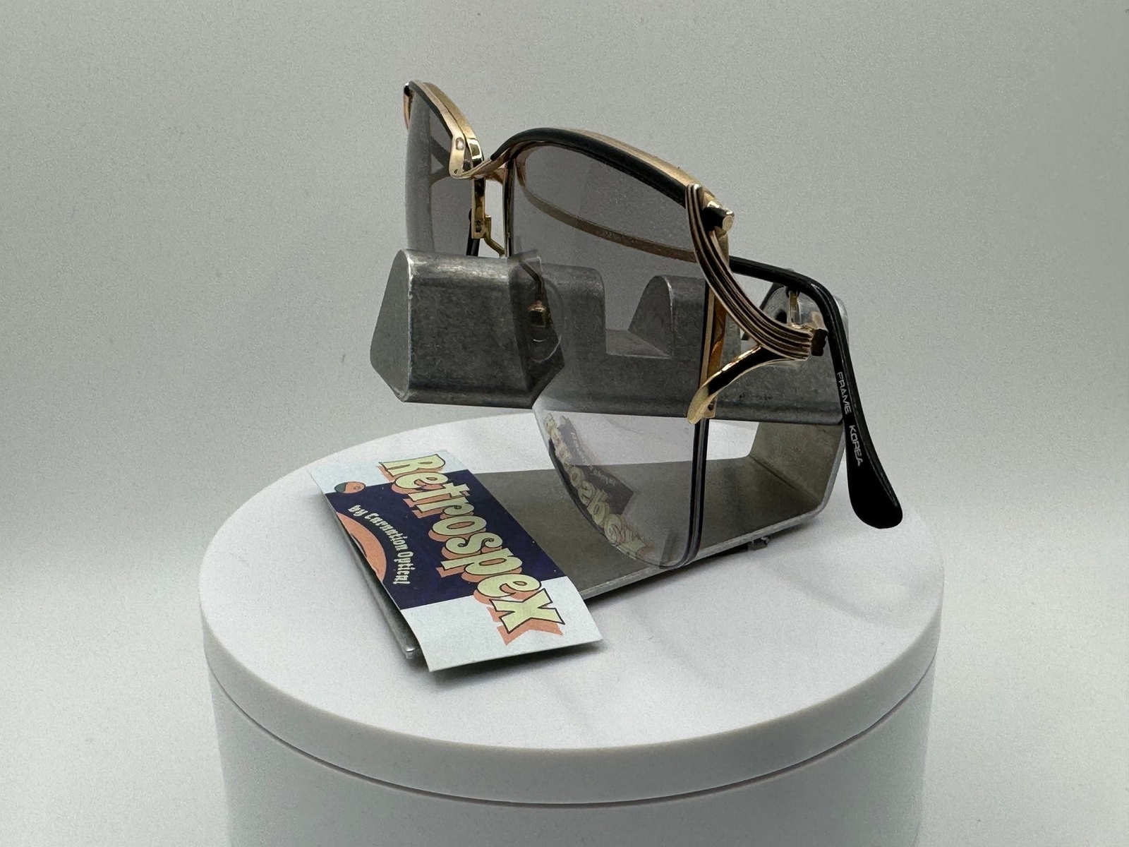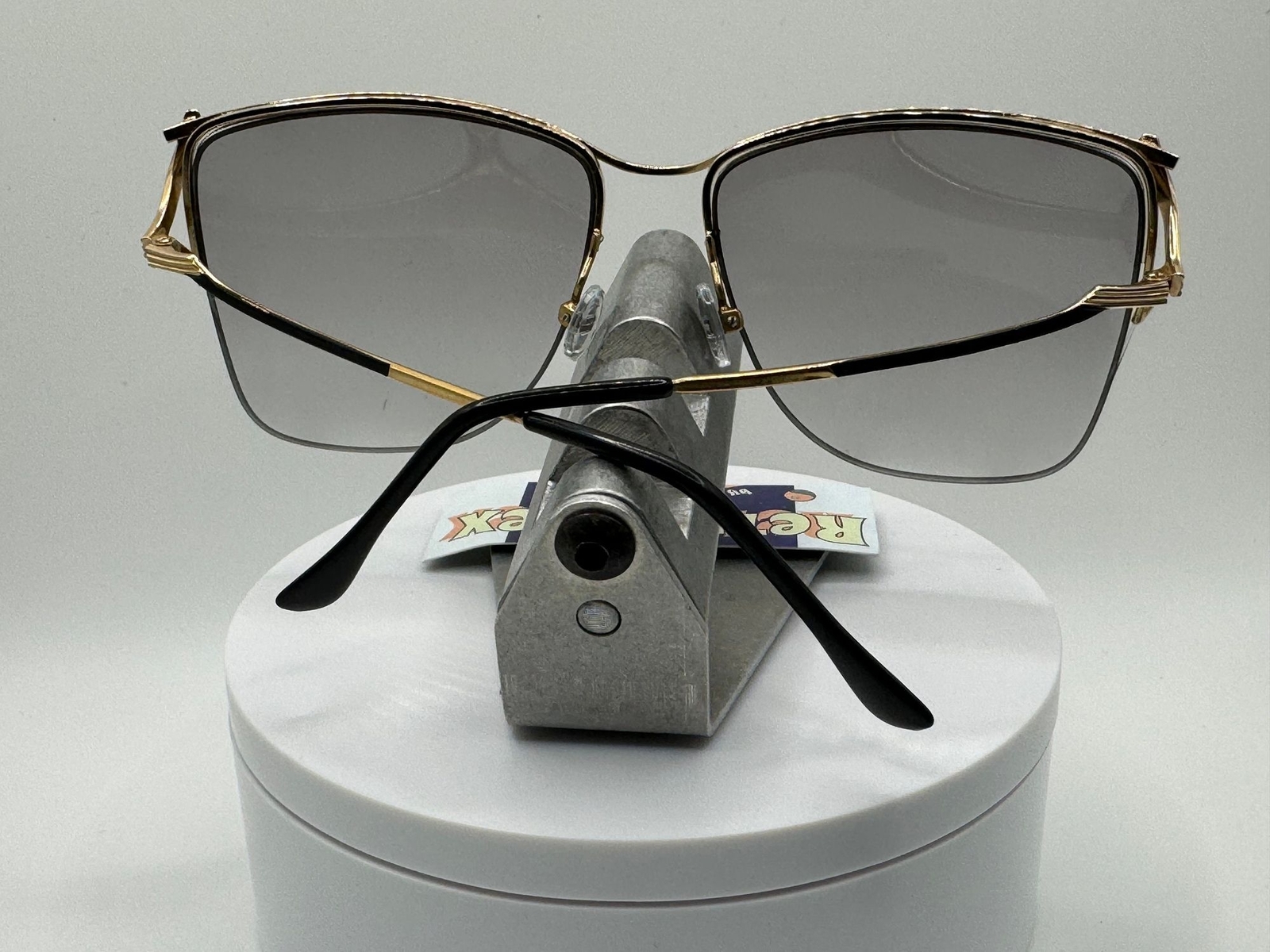 как выглядит Vintage Oversize Sunglasses NOS Light Grey Fade Lens Black Gold Frame Retro фото