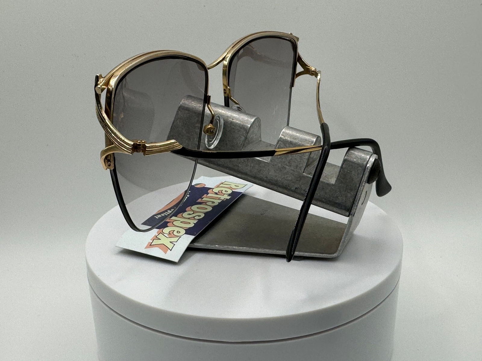 Vintage Oversize Sunglasses NOS Light Grey Fade Lens Black Gold Frame Retro