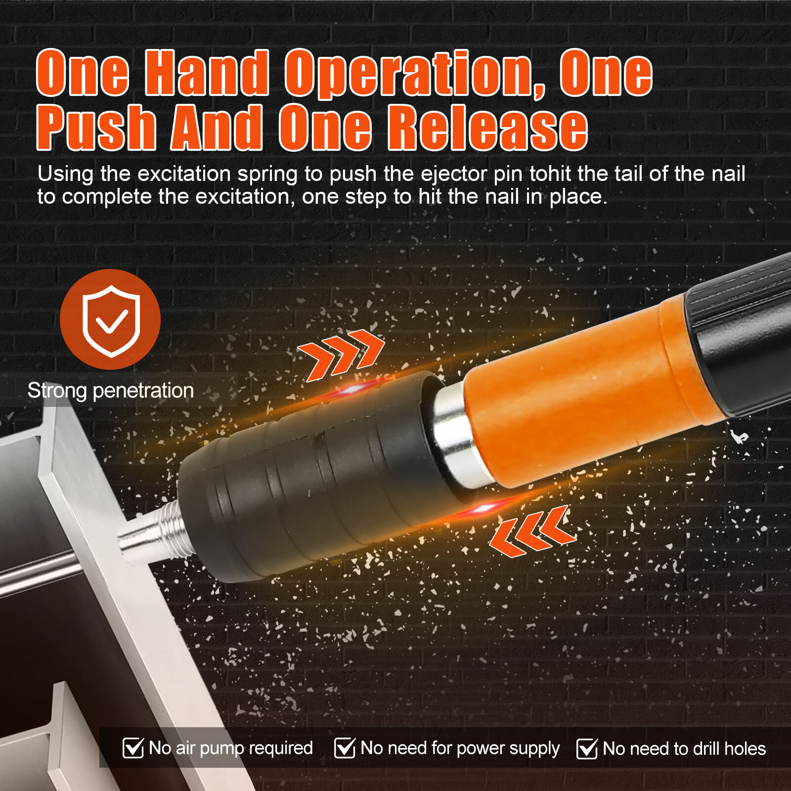 Orange Portable Concrete Nailer Nail Gun Cordless Wall Fastening Tool W/O Nails