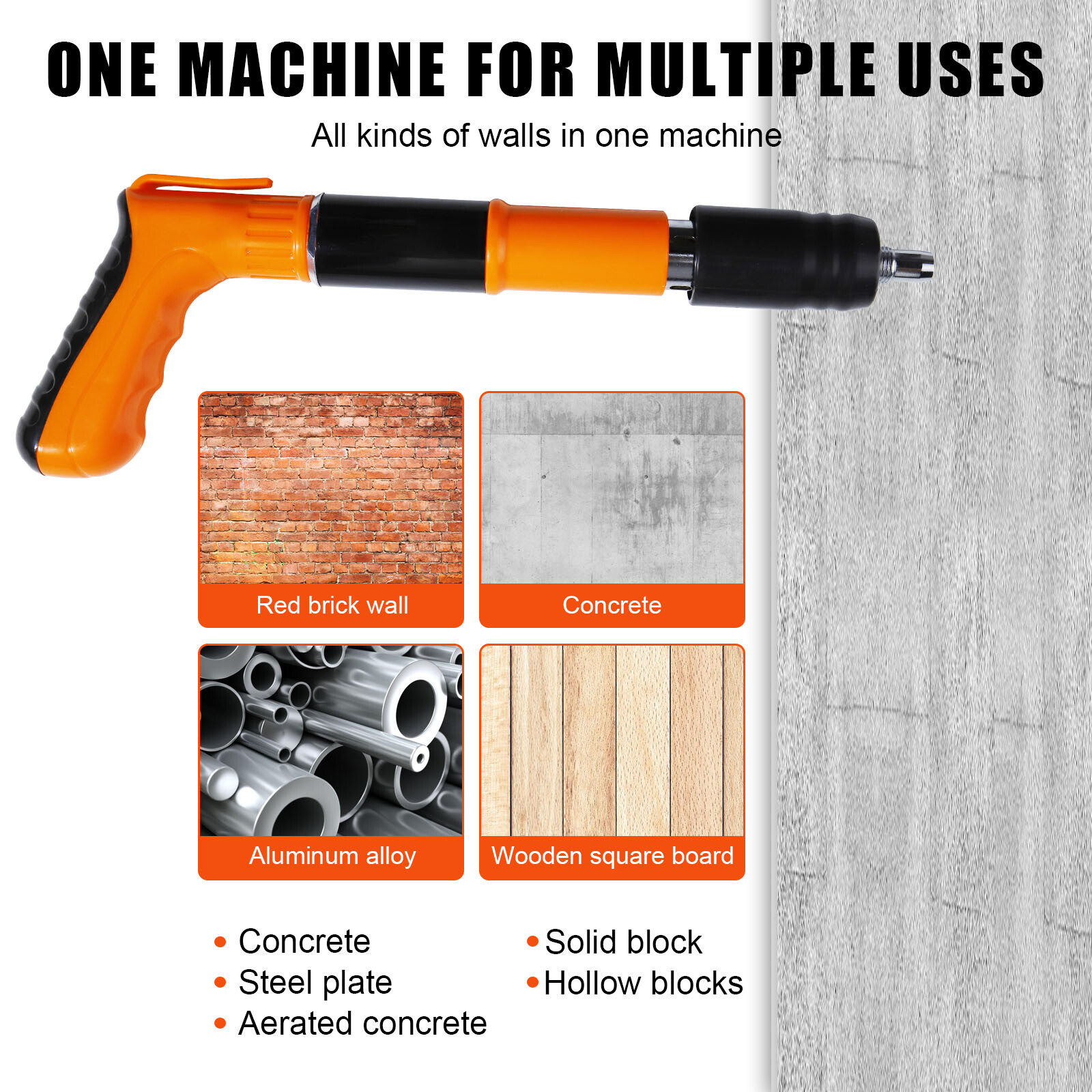 Widely used: for brick walls, concrete walls,Wood,Steel board