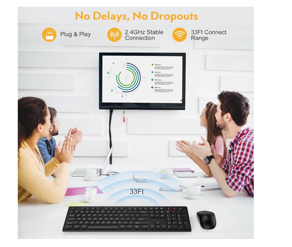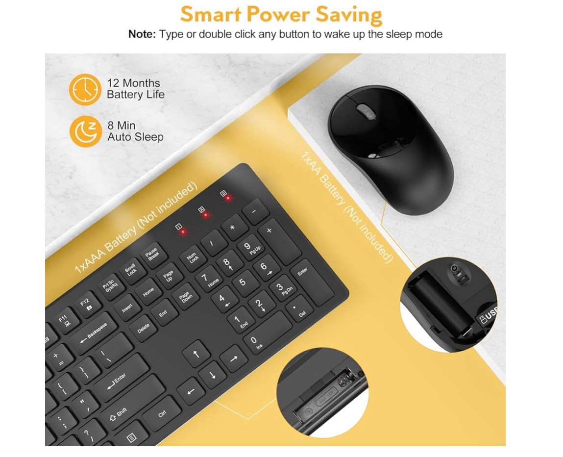 Wireless Keyboard and Mouse, Trueque Silent 2.4GHz Cordless Black