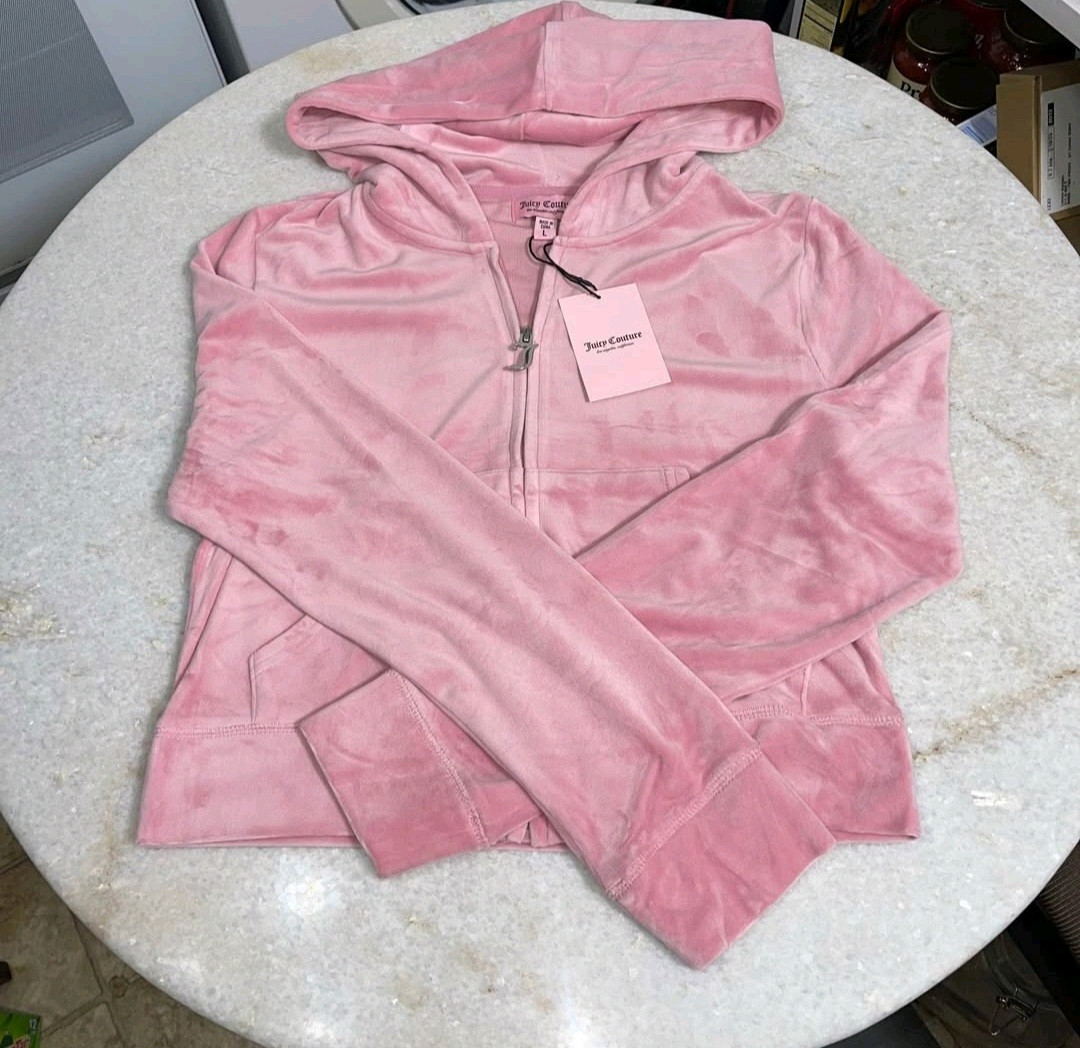 NWT JUICY COUTURE Velour Bling Tracksuit Hoodie Pant Rose Pink Size Xl