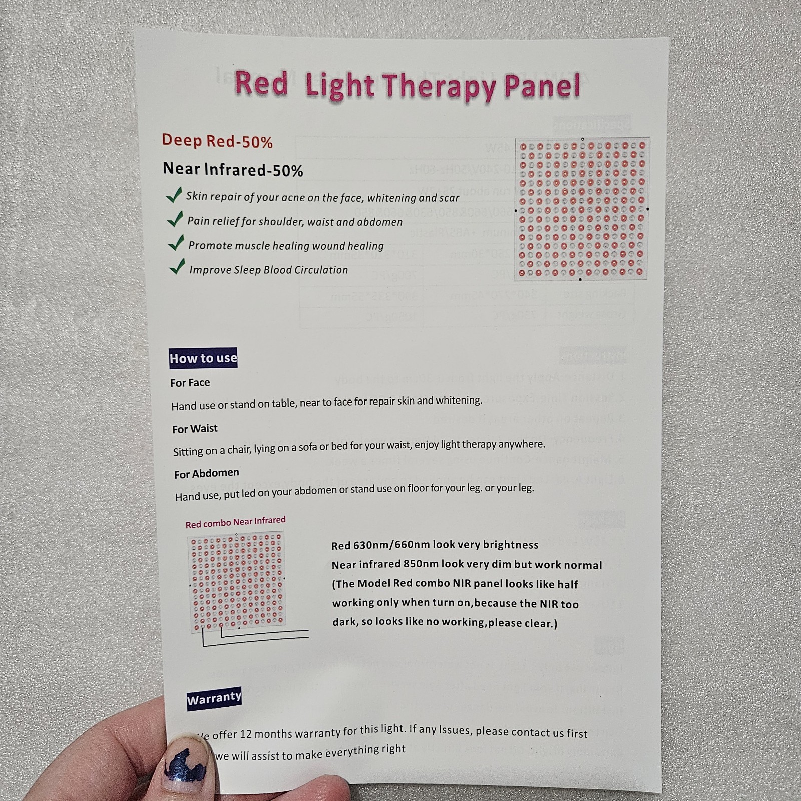 LED Red Light Therapy Device, 45W Panel, 660nm Deep Red 850nm Near-Infrared