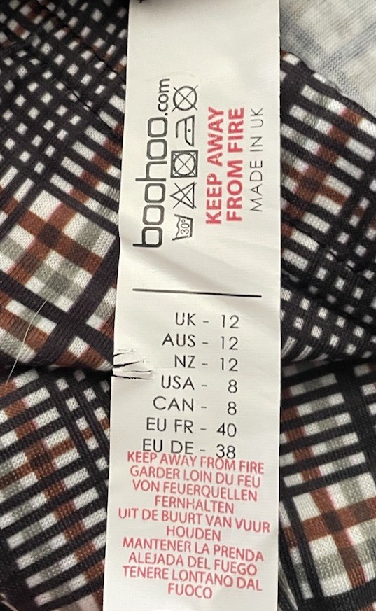 Boohoo Stretch Trousers. Size 12. Tonal Check Jersey Leggings. BNWT. Made In UK