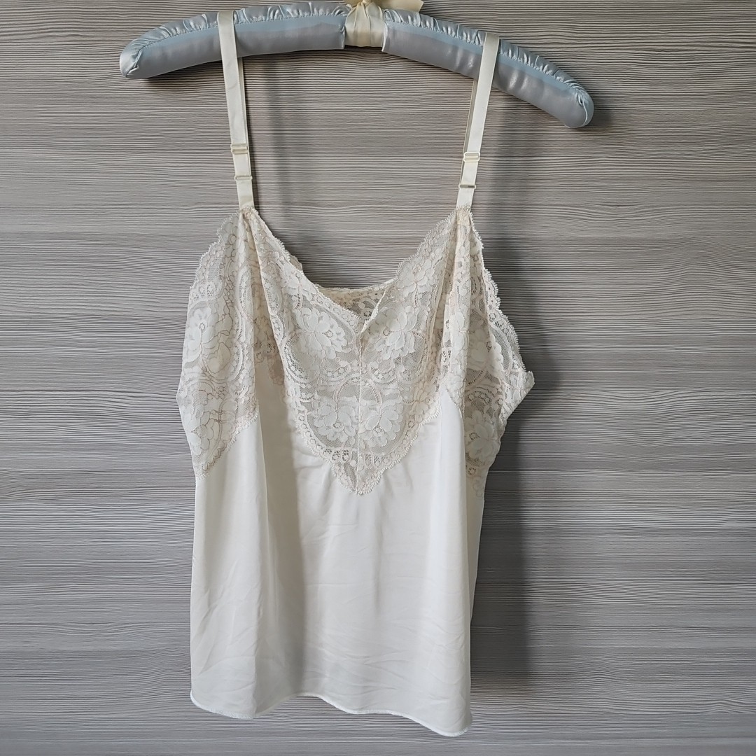 как выглядит Vintage Shadowline Cream Camisole Top Size 40 Adjustable Straps w Lace USA Made фото