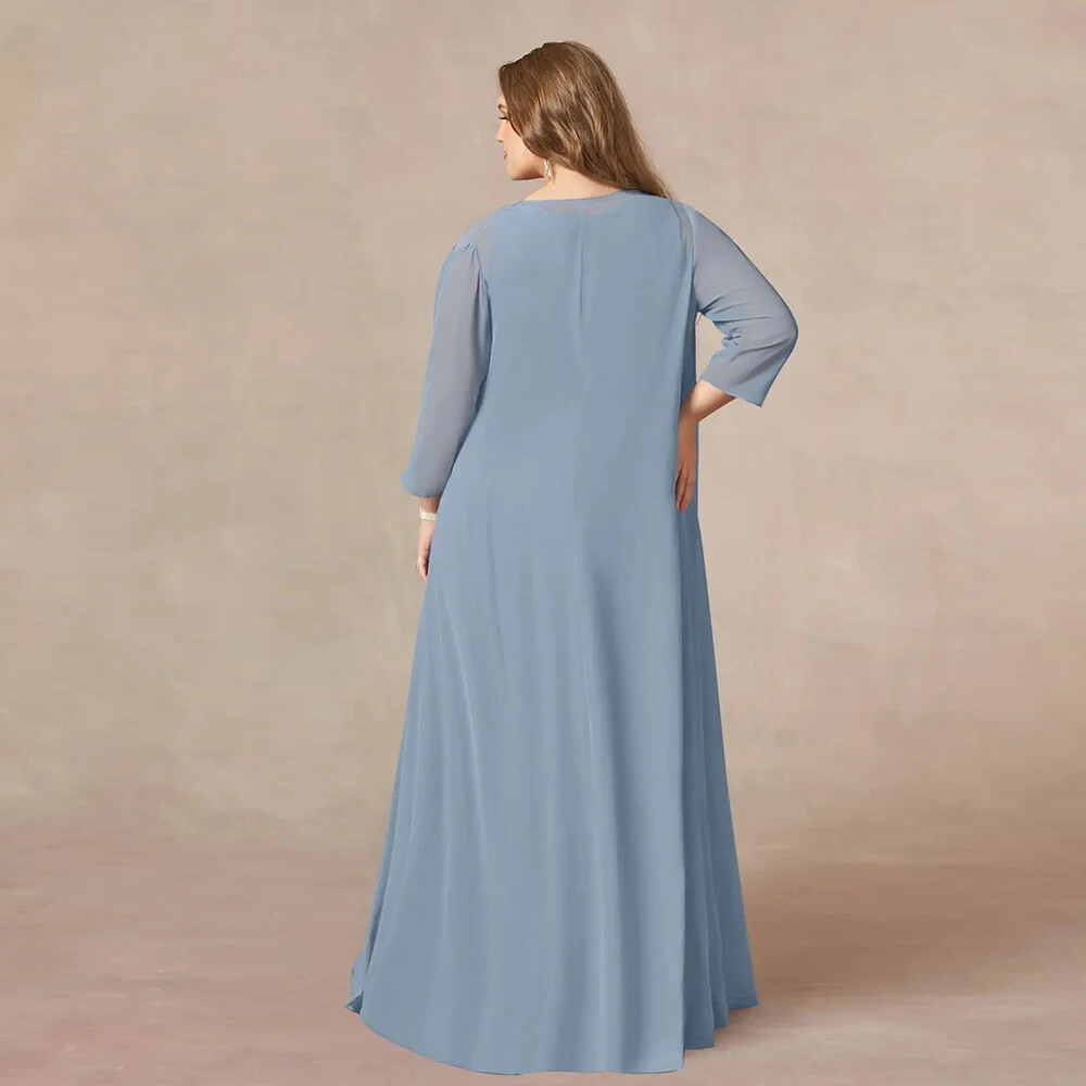 Plus Size Mother of Bride Dresses 3/4 Sleeve Appliques Chiffon Party Prom Gowns