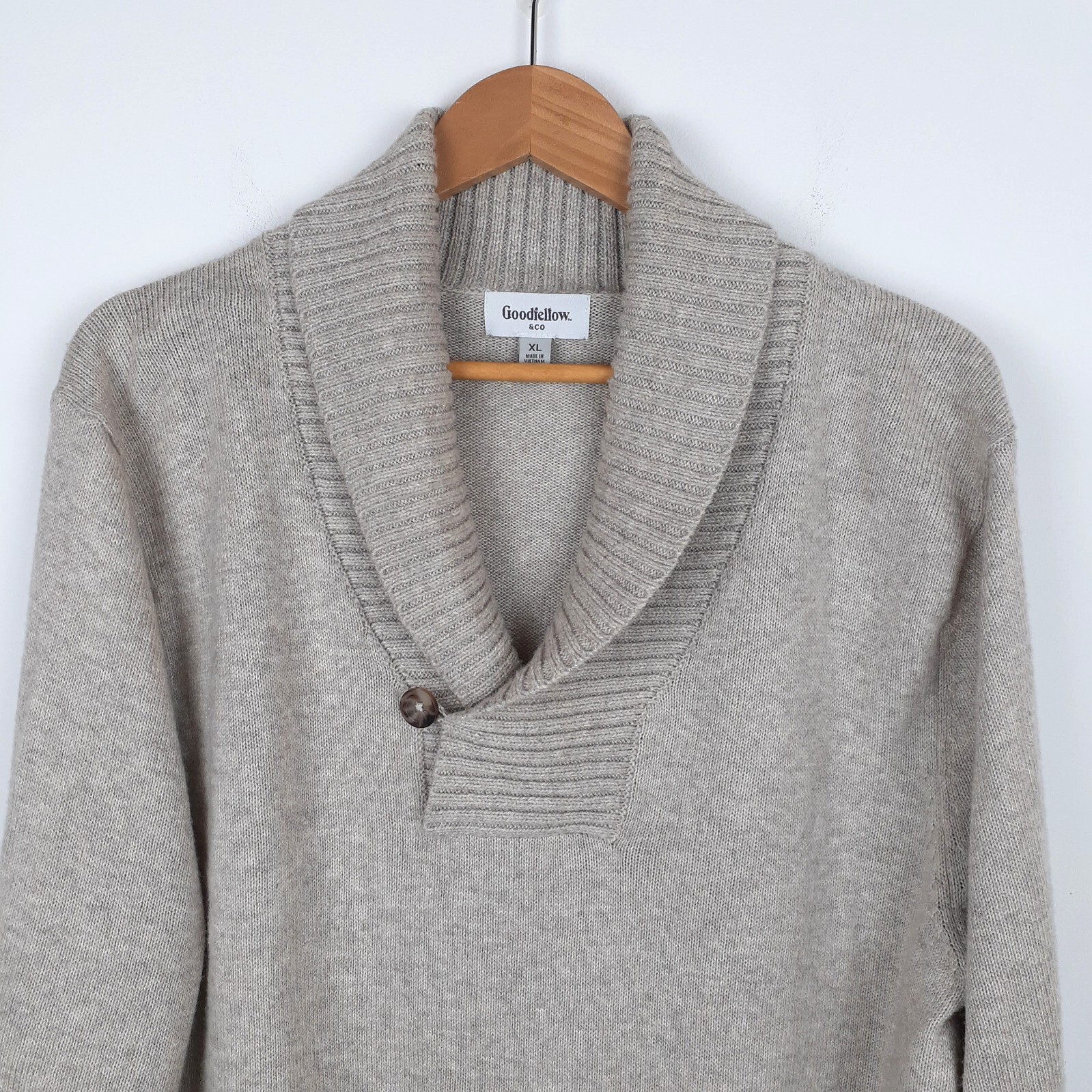 как выглядит Shawl Collar Sweater Size XL. Oatmeal Buff Tennis Old Money Goodfellow and Co фото