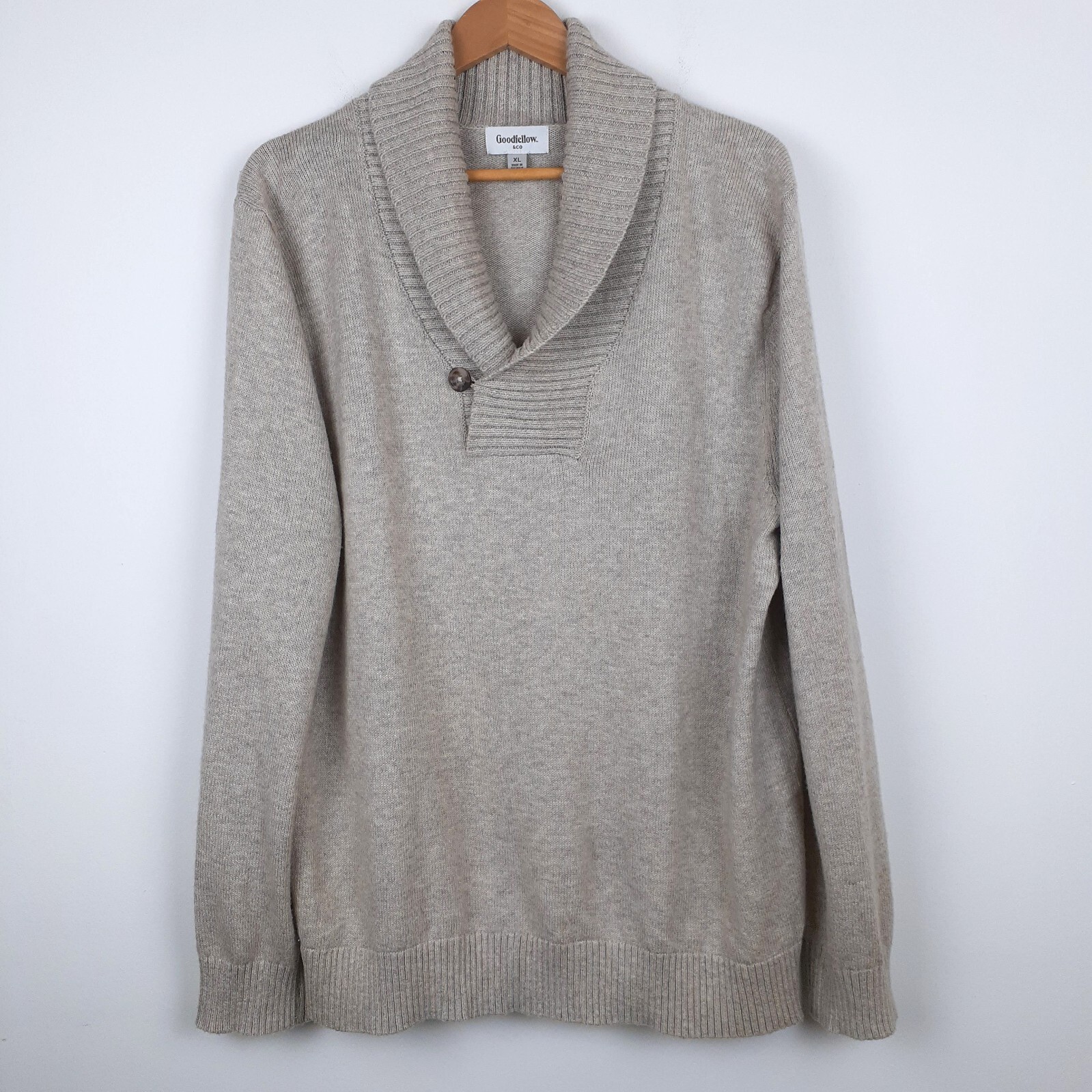 Shawl Collar Sweater Size XL. Oatmeal Buff Tennis Old Money Goodfellow and Co