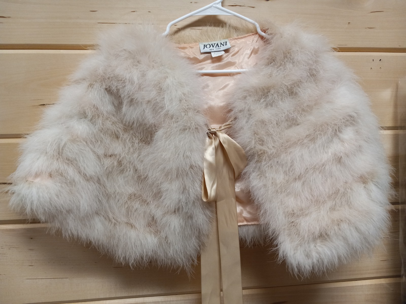 как выглядит Jovan New York Champagne Feather Shrug Wrap Wedding/Formal Sz. Medium M фото