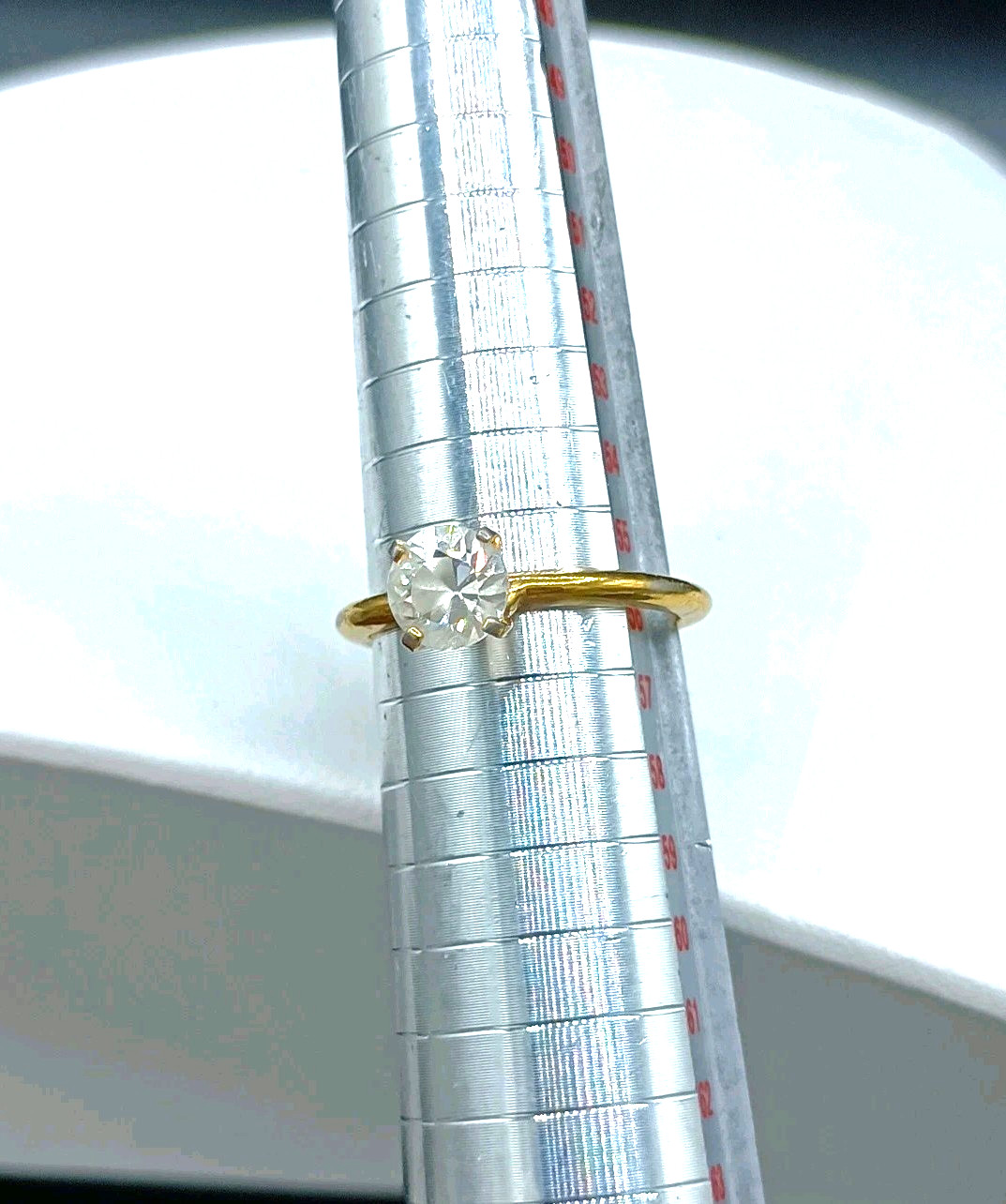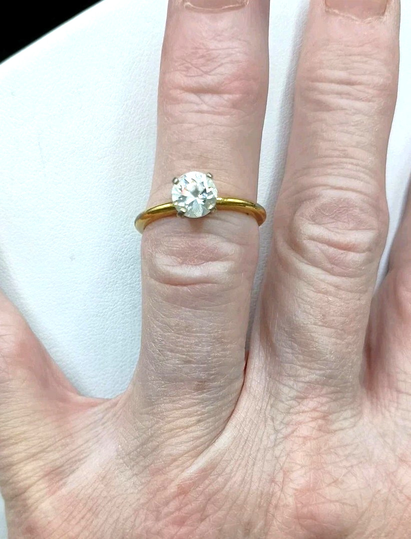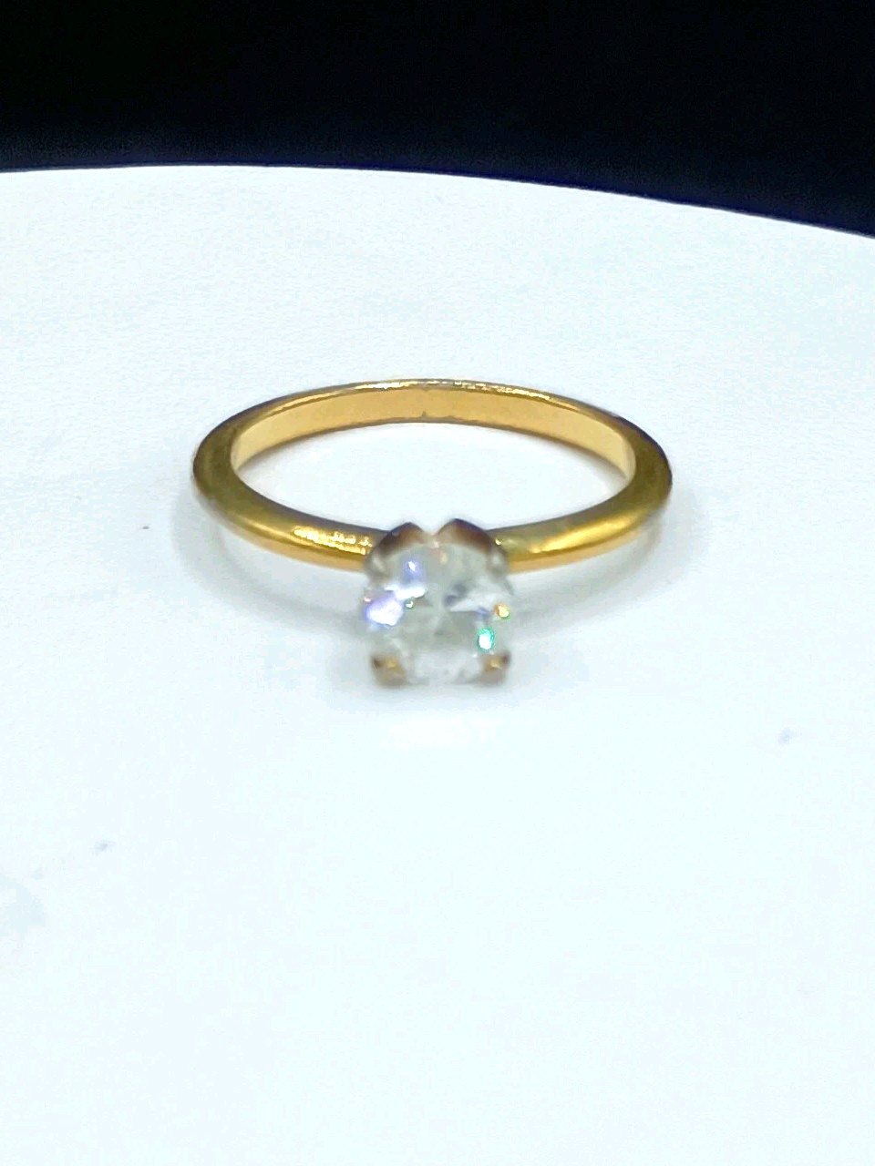 как выглядит Vintage Cubic Zirconia CZ Solitaire Cushion Cut Gold Tone Band Ring Size 7.75 фото