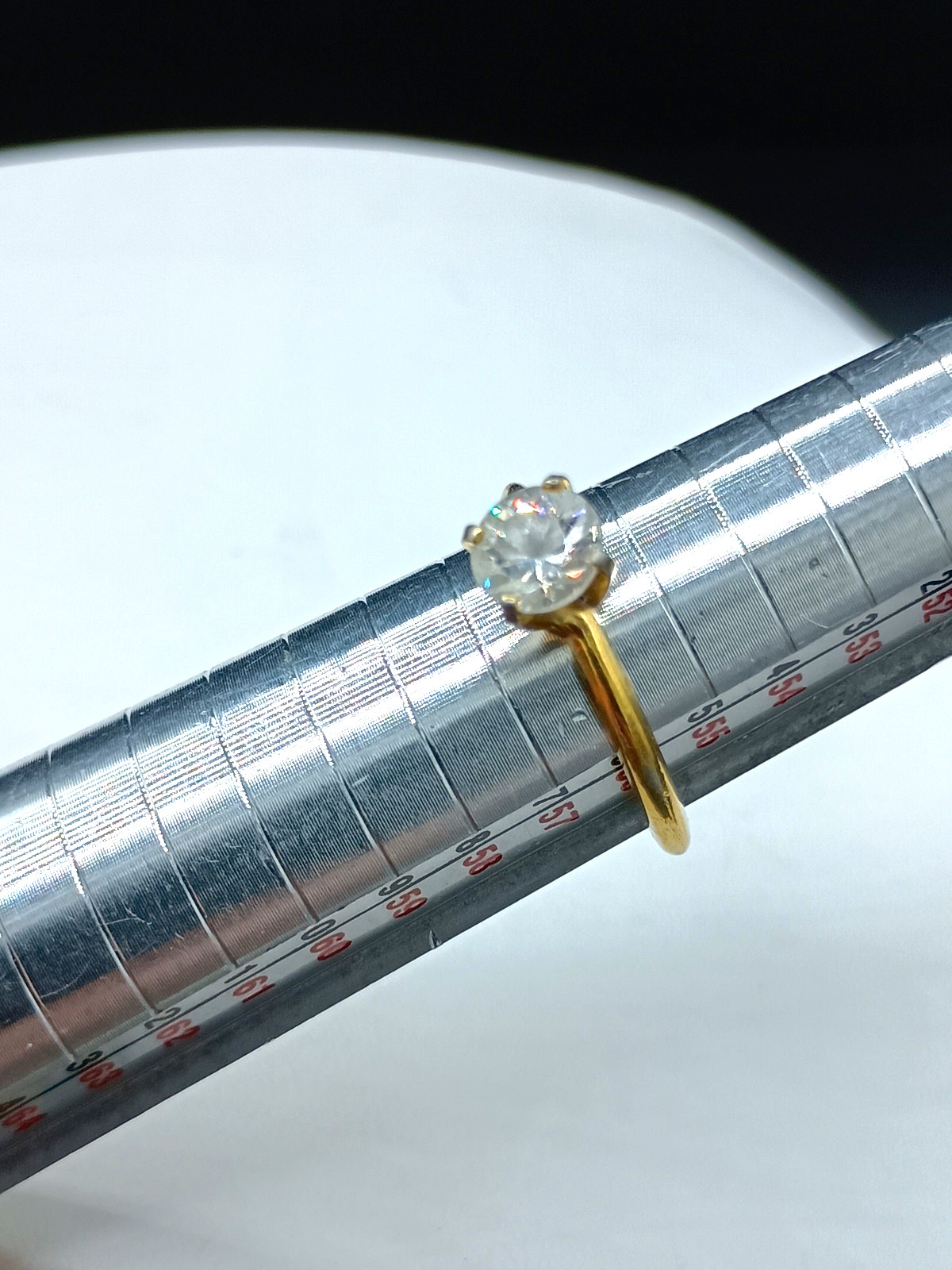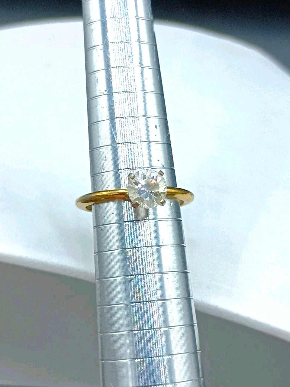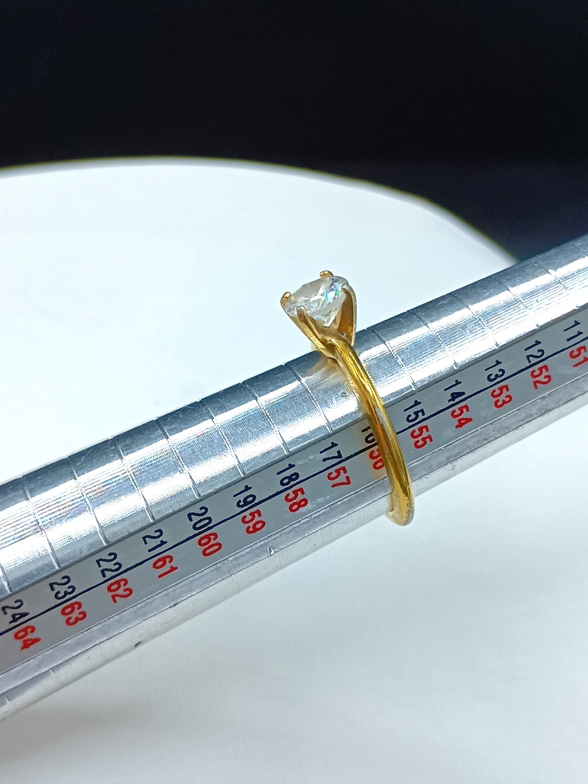как выглядит Vintage Cubic Zirconia CZ Solitaire Cushion Cut Gold Tone Band Ring Size 7.75 фото