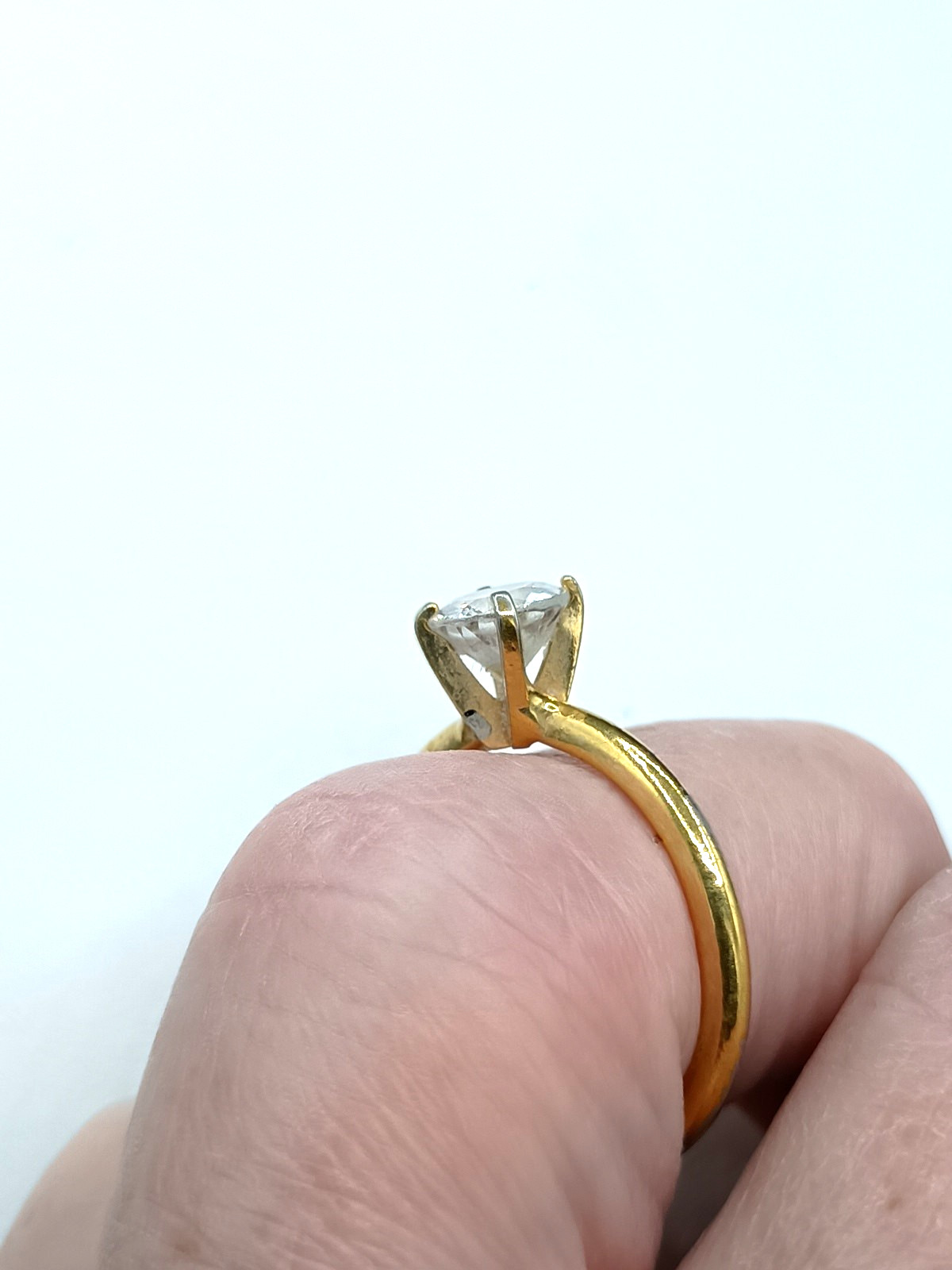 Vintage Cubic Zirconia CZ Solitaire Cushion Cut Gold Tone Band Ring Size 7.75