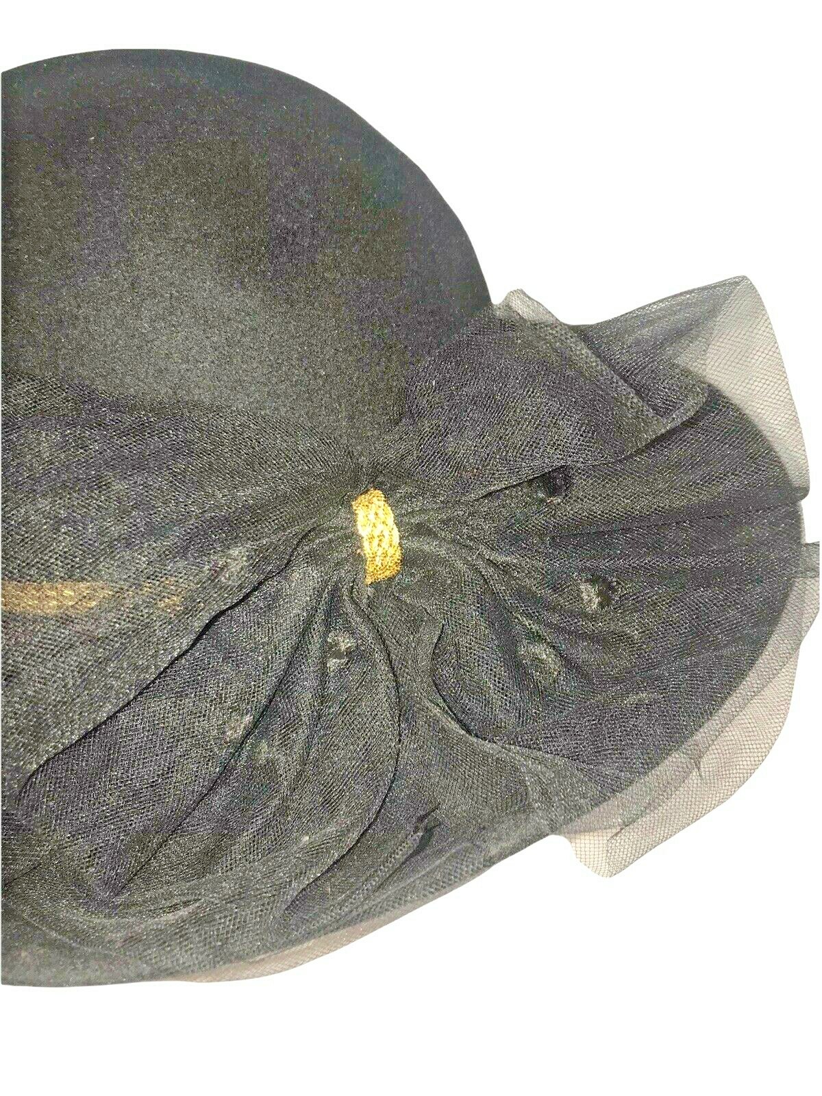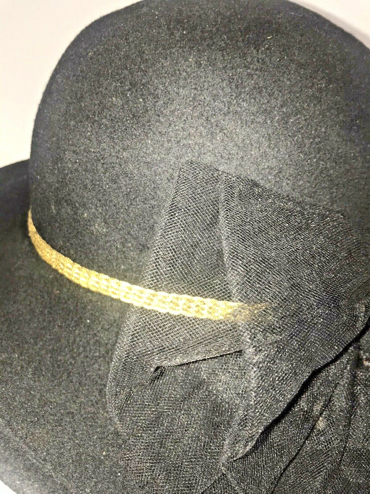 Betmar Street Smart Vintage Women's Hat Black Felted Wool Tulle 22.5 IC Retro