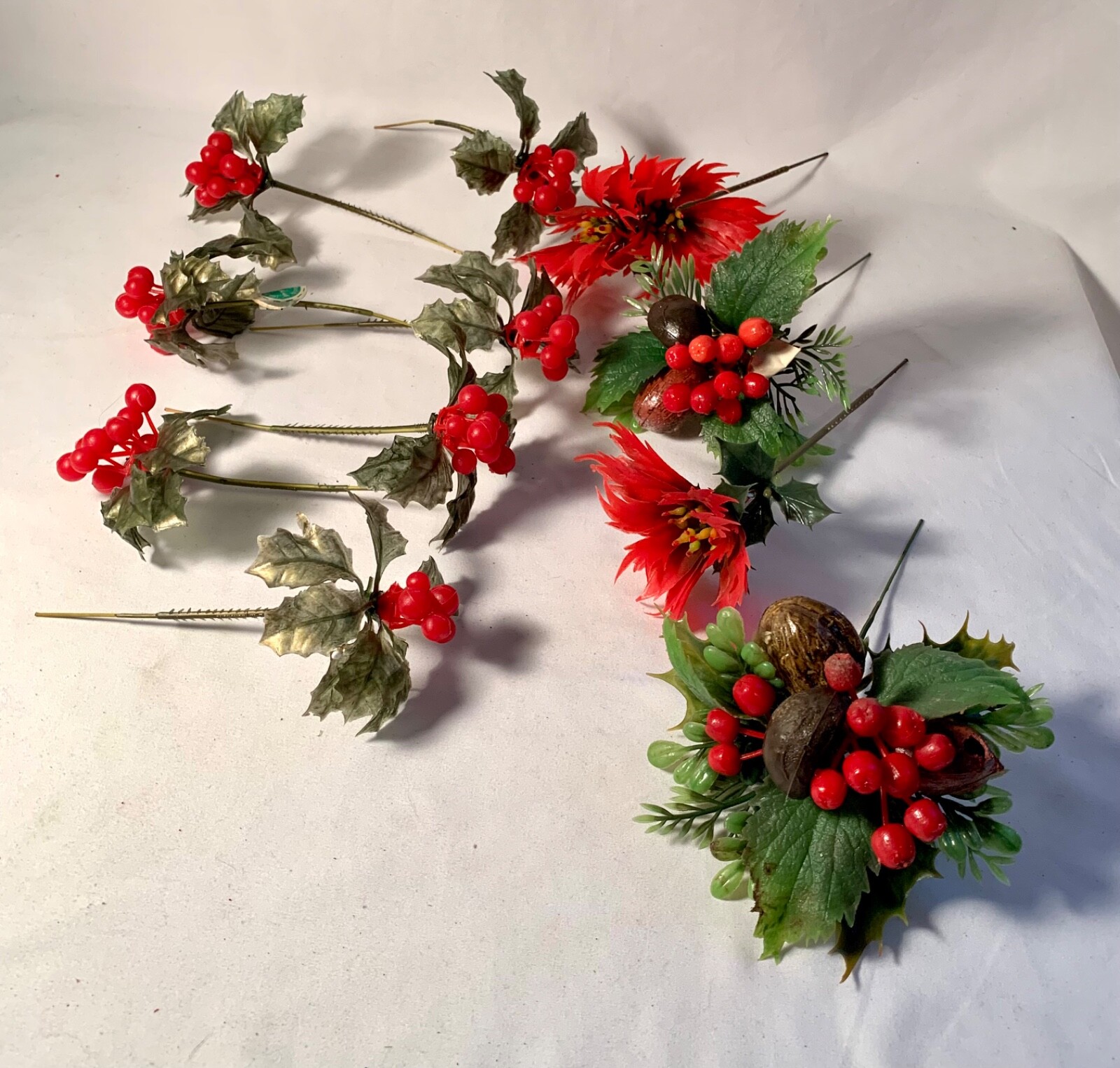 Lot of 10 VTG MCM Plastic Christmas Floral Flower Holly Pick Stems Japan