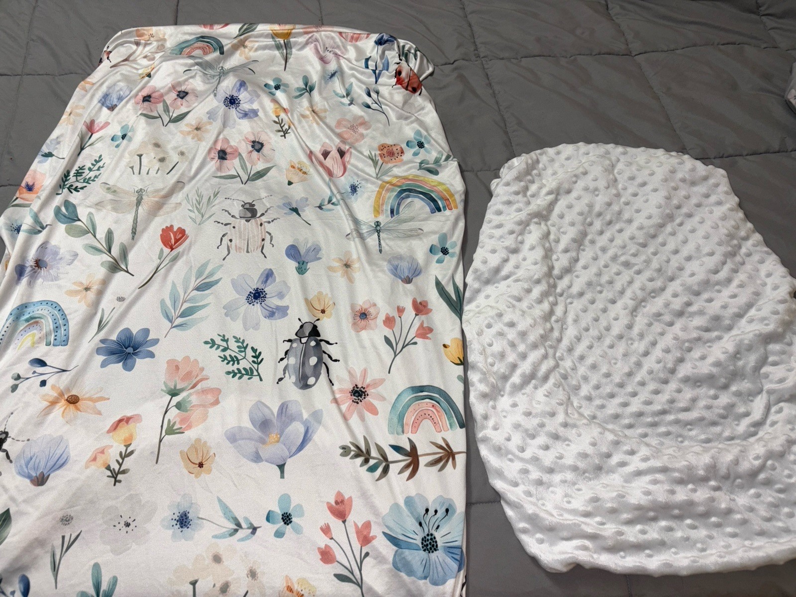 как выглядит 2 Piece Buttery Soft Spring Insect/flower Sheet And White Mink Changing Cover фото