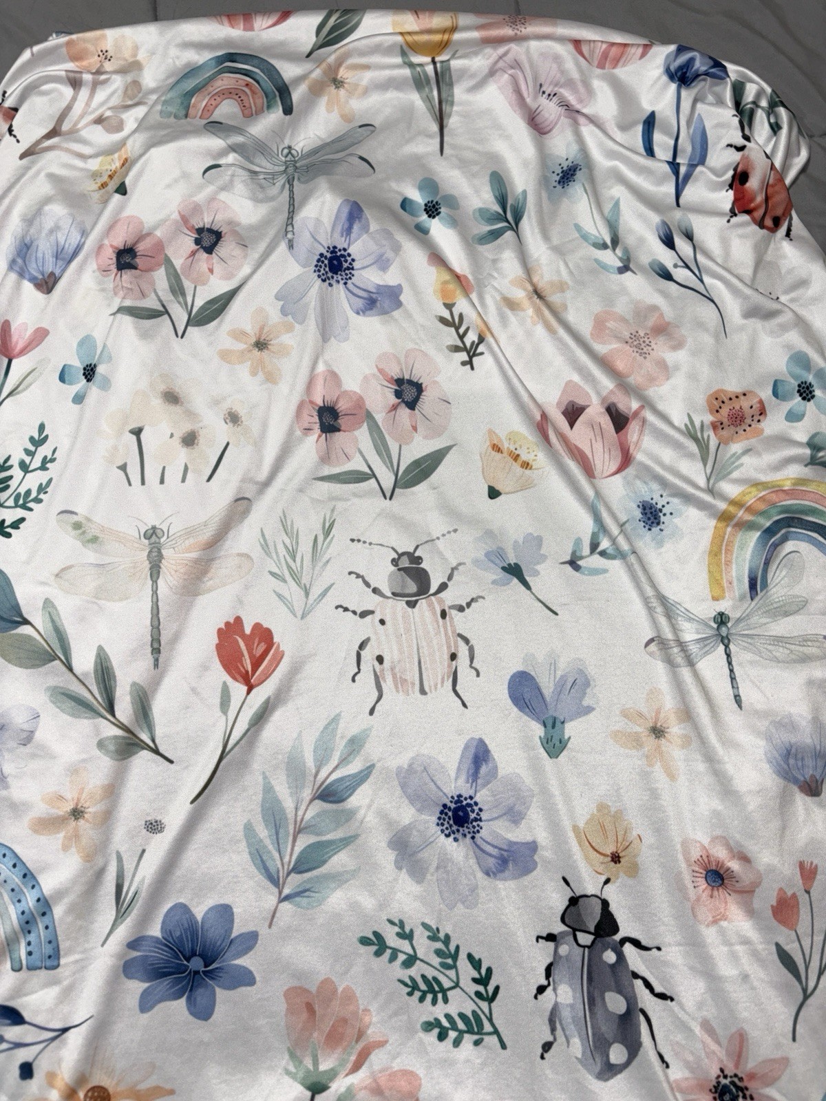 2 Piece Buttery Soft Spring Insect/flower Sheet And White Mink Changing Cover