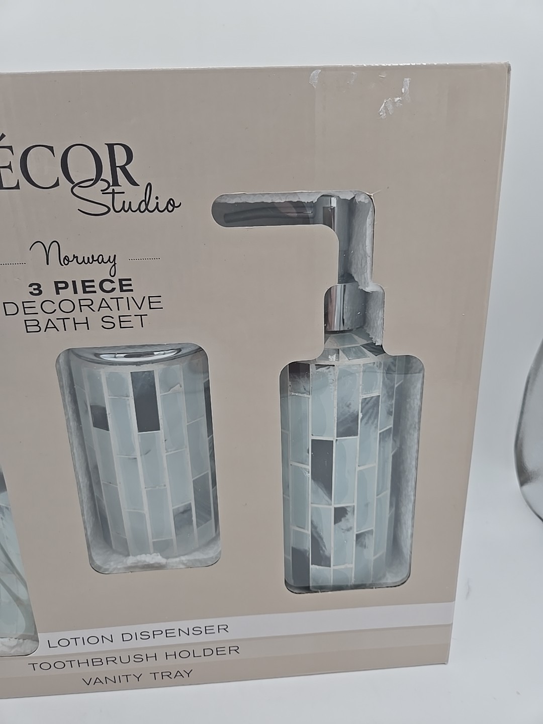 Decor Studio Norway 3 Piece Decorative Bath Set Glass Mosiac NEW
