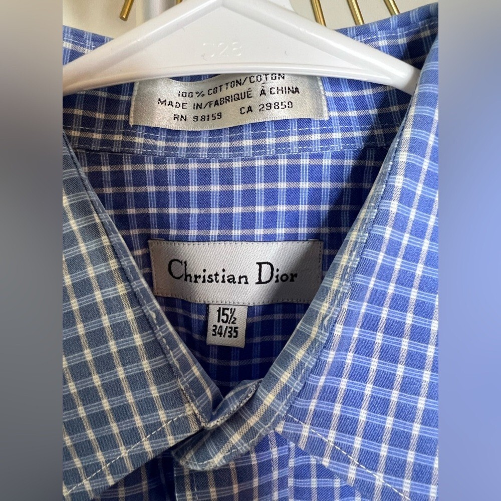 Men s Christian Dior Long sleeve blue white check button down shirt 15 1/2 34-35