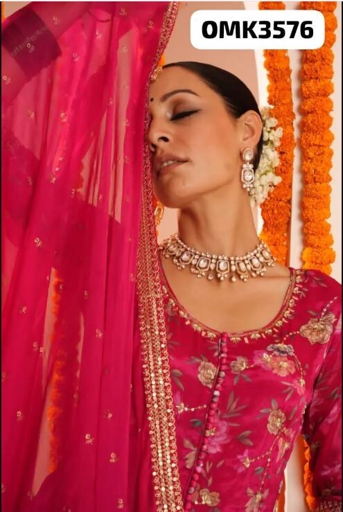 Women Chinnon Full Flair Anarkali Kurti Set With Pure Chinon Pant And Digital De