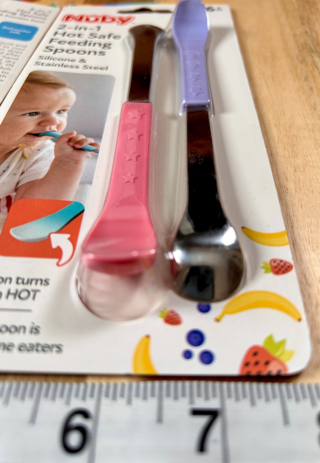 как выглядит 2 Pkgs 4 total spoons Nuby 2-in-1 Hot Safe Feeding Spoons: Dual-Ended 6 M New фото