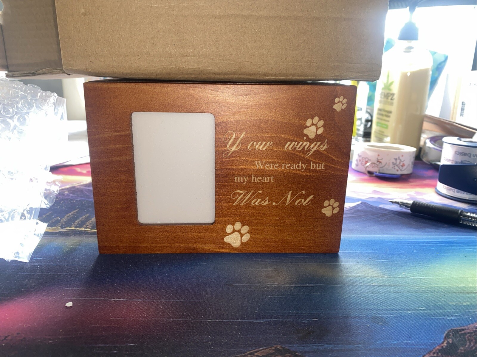 как выглядит Photo Pet Brown Urn for Dogs Cats Ashes Memorial Pine Medium- Lock Sliding Top фото