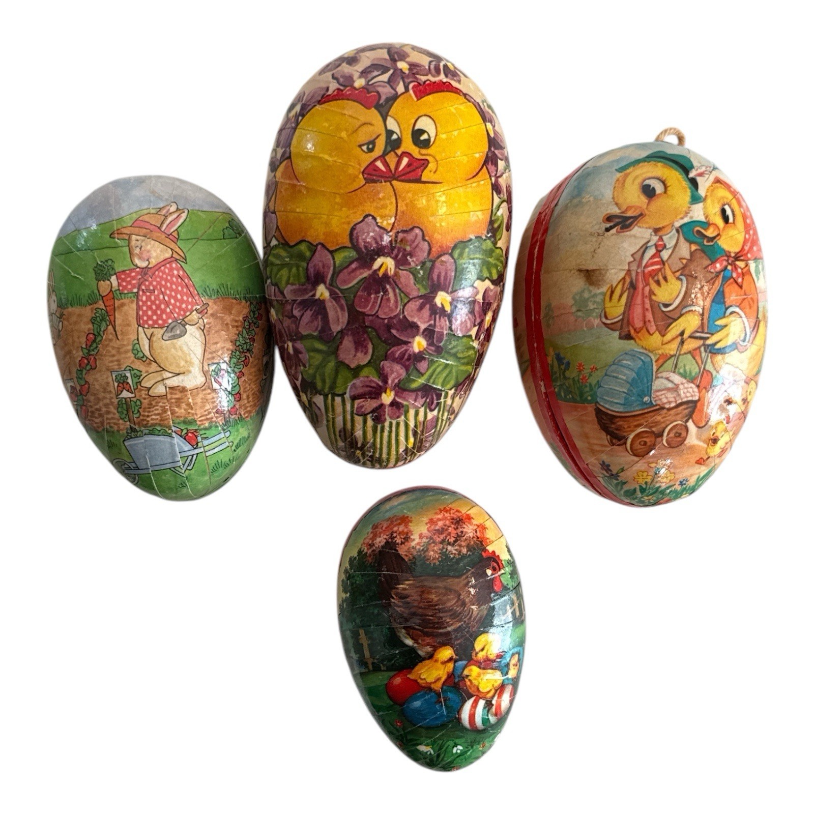 VINTAGE Lot of German Paper-Mache Easter Egg Containers Chicks Grass CUTE