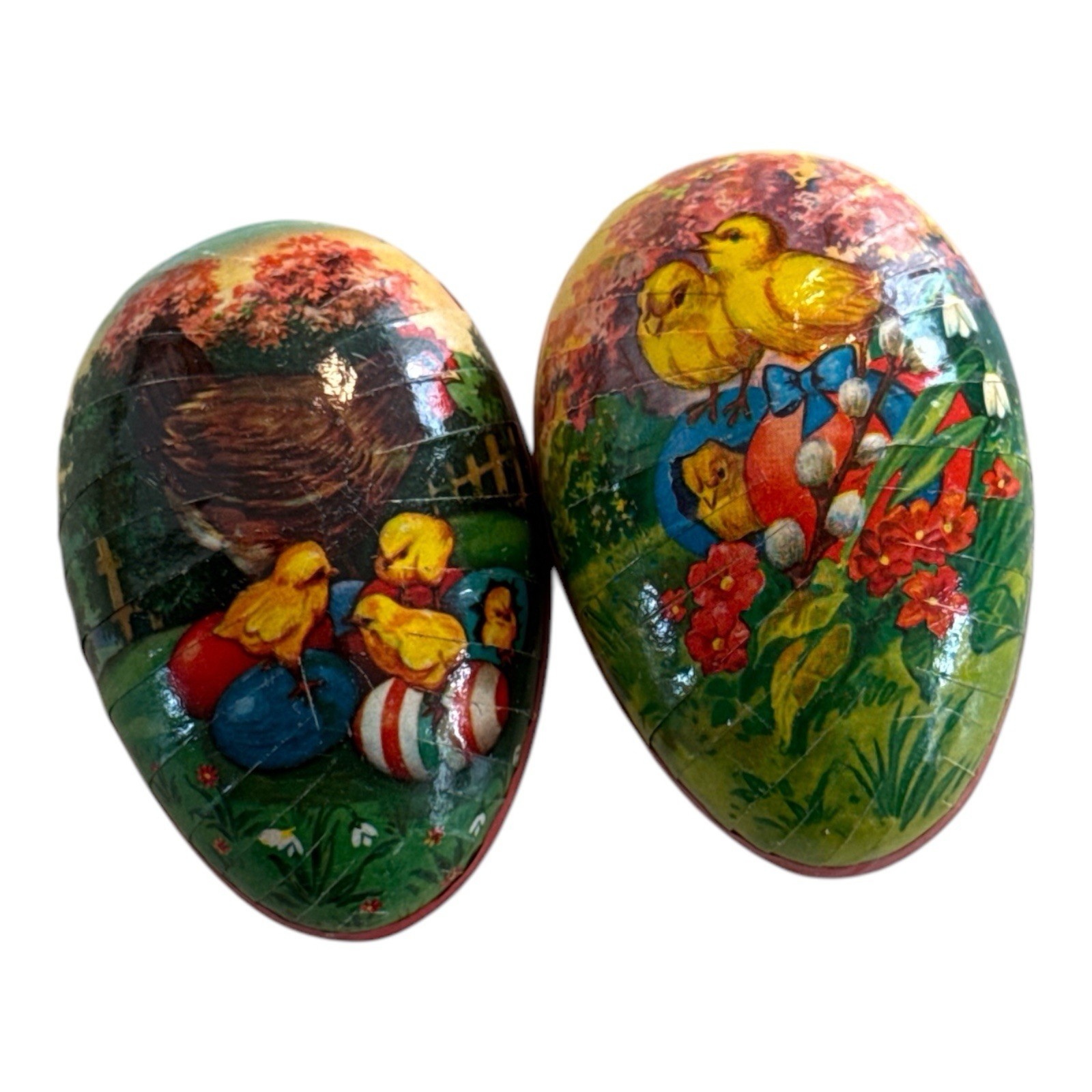 • VINTAGE Lot of German Paper-Mache Easter Egg Containers Chicks Grass CUTE