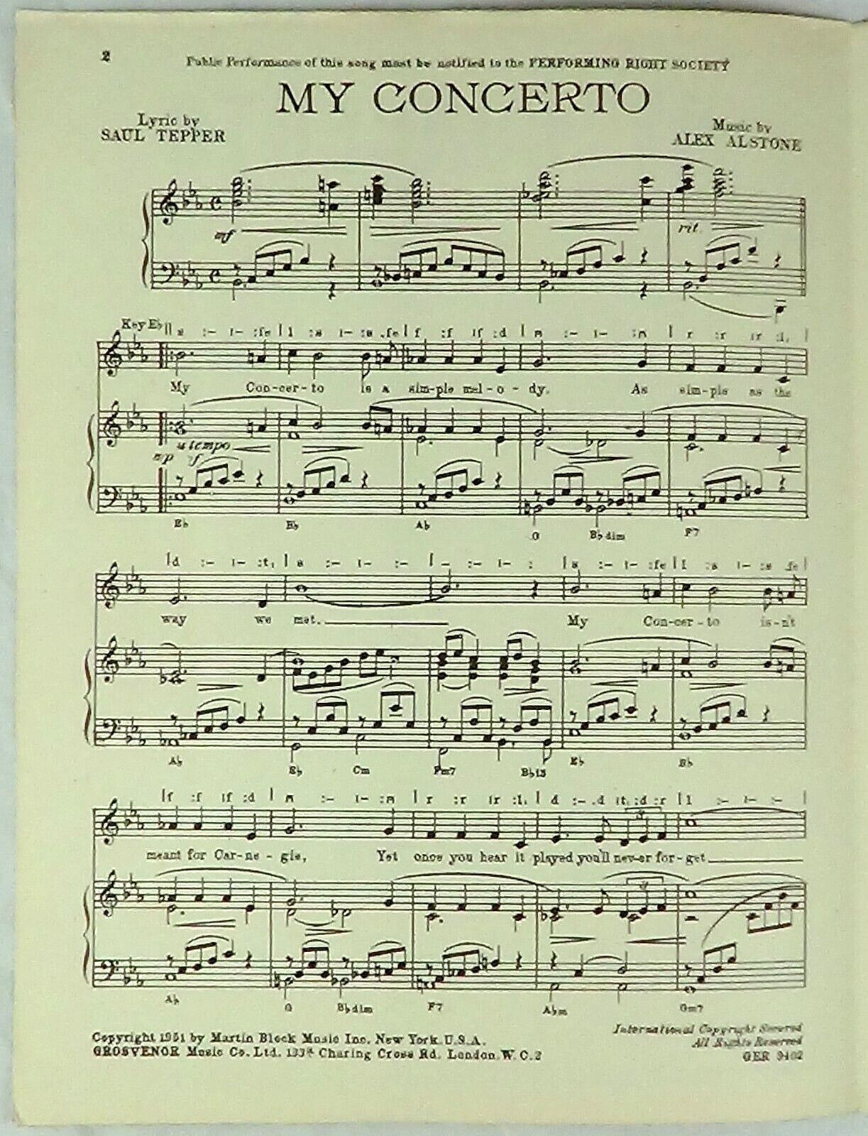 My Concerto by Alstone Tepper Piano Vocal Sheet Music Anne Shelton Vintage